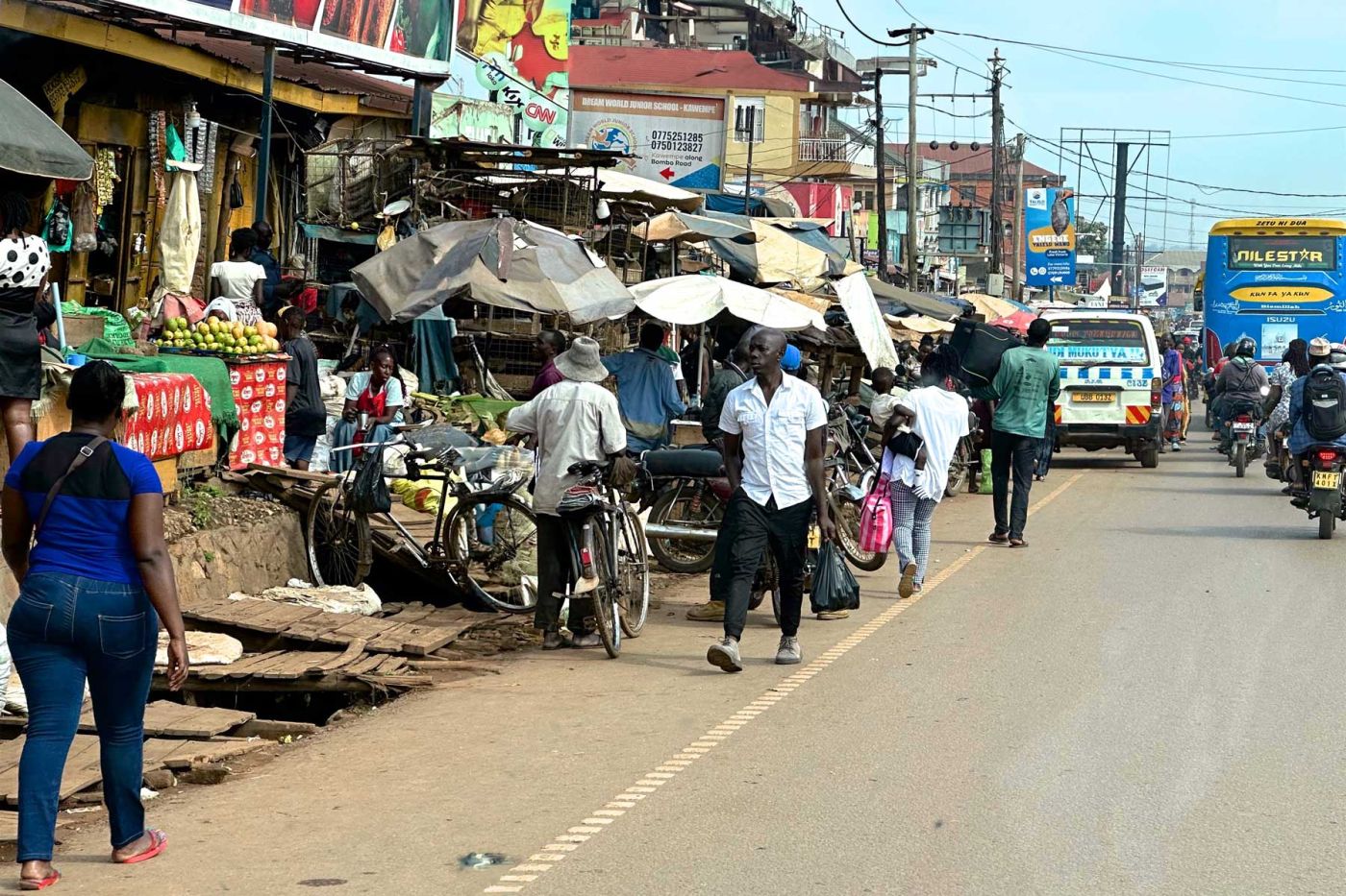 Bei Bwaise biegen wir auf den Gulu-Kampala Hwy ein. Die ersten 30 km sind ein Wahnsinn. Viele Menschen, Autos, Mopeds, Märkte lassen ein Vorwärtskommen kaum zu. Danach wird es besser...