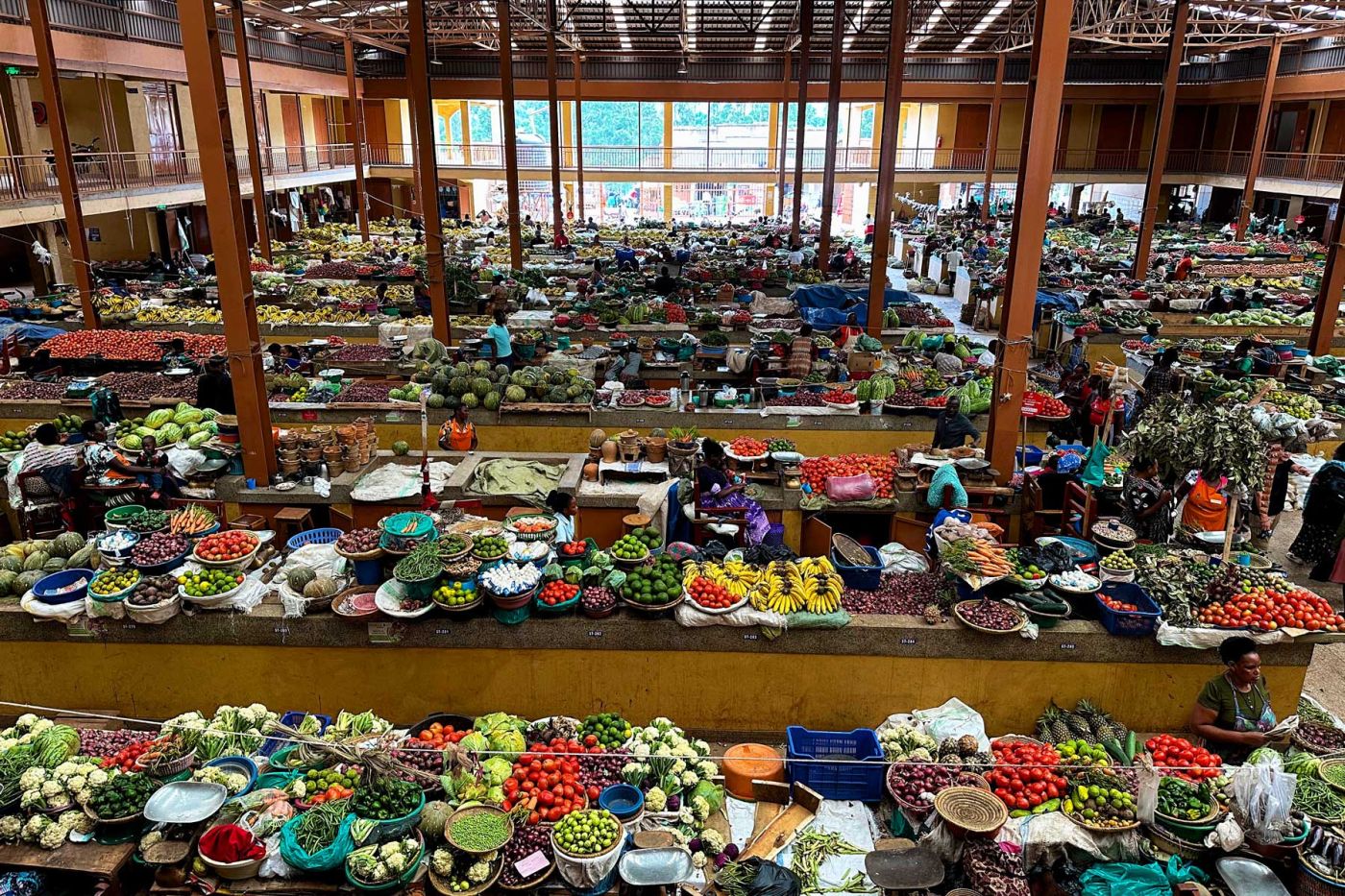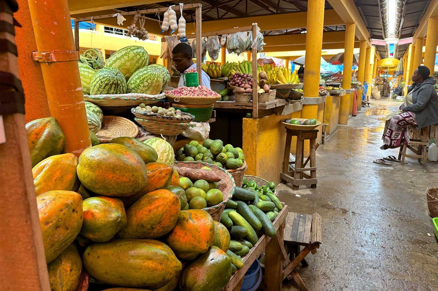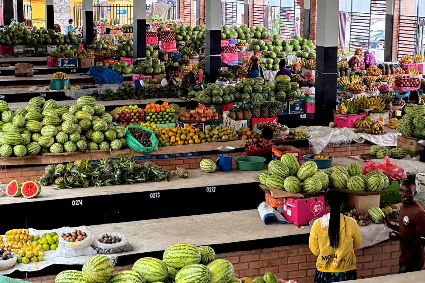 In Fort Portal machen wir eine Pause und besichtigen die „Shopping-Mall“... Obst, Gemüse, Mehl, Körner, Kleidung,... wir sind die einzigen Weißen... aber interessant.