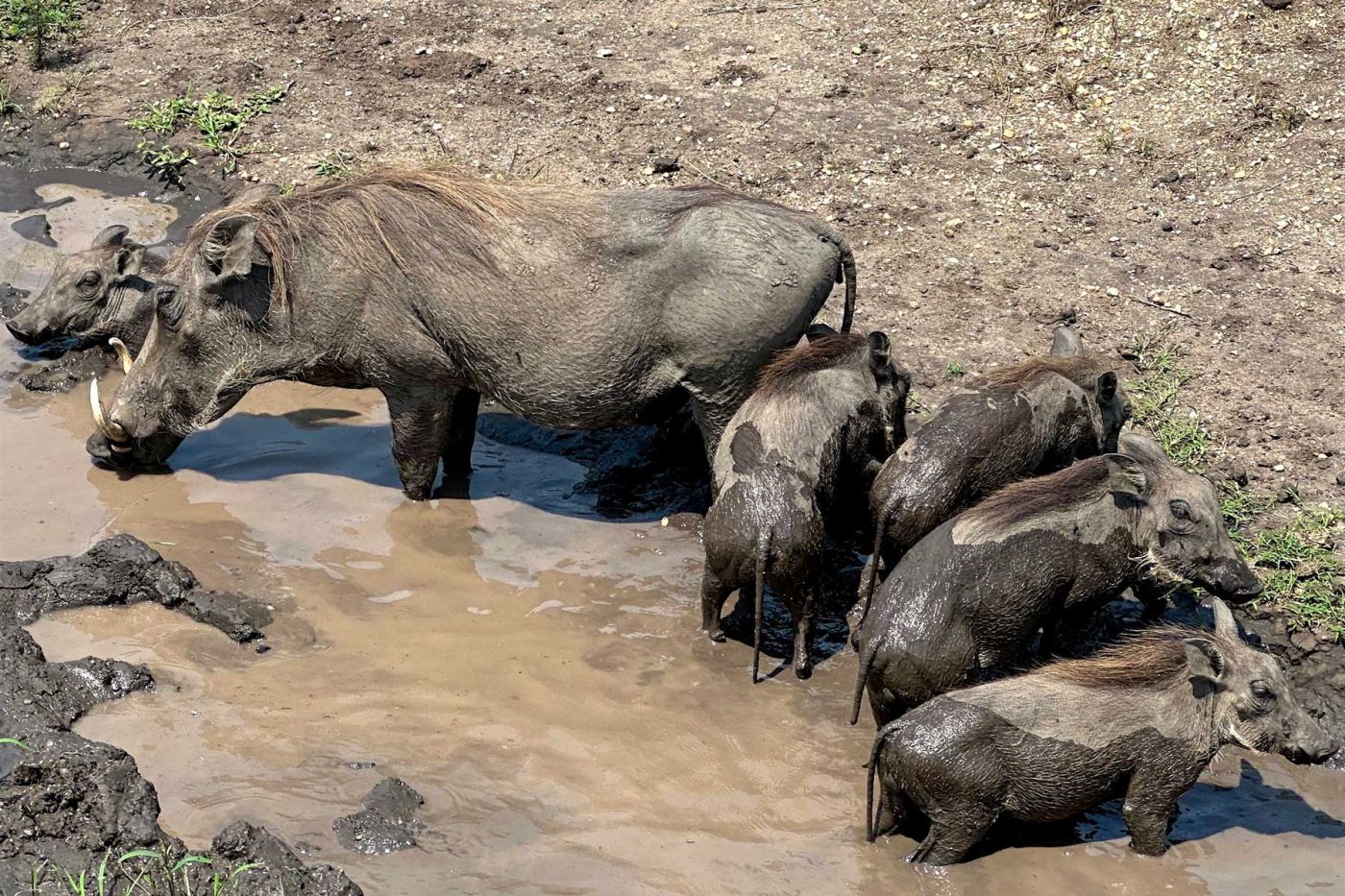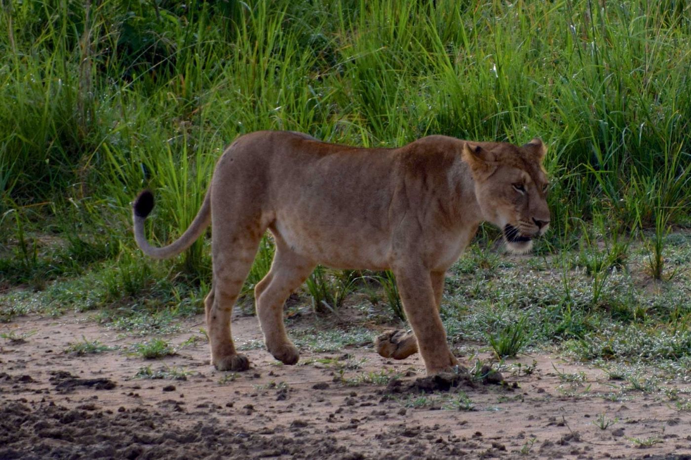 Wir sehen Büffel, Löwinnen, Elefanten, Rothschild-Giraffen, Kuhantilopen, Uganda-Kob-Antilopen (eines der Wappentiere Ugandas), Warzenschweine, Seeadler, Kronenkraniche und andere Vögel...