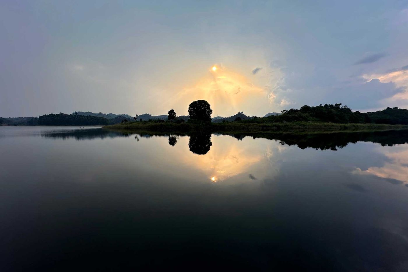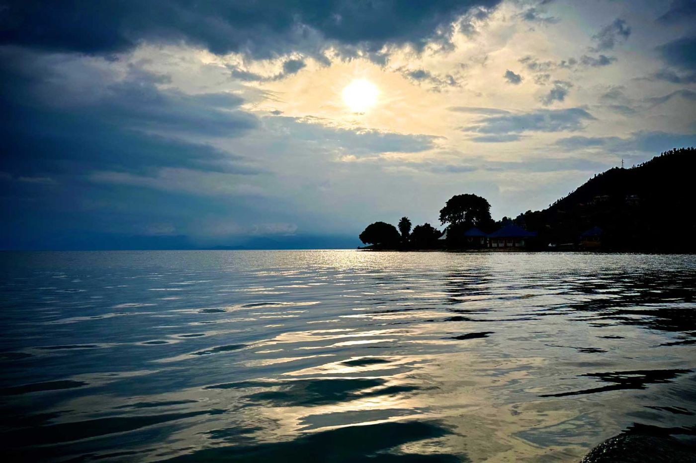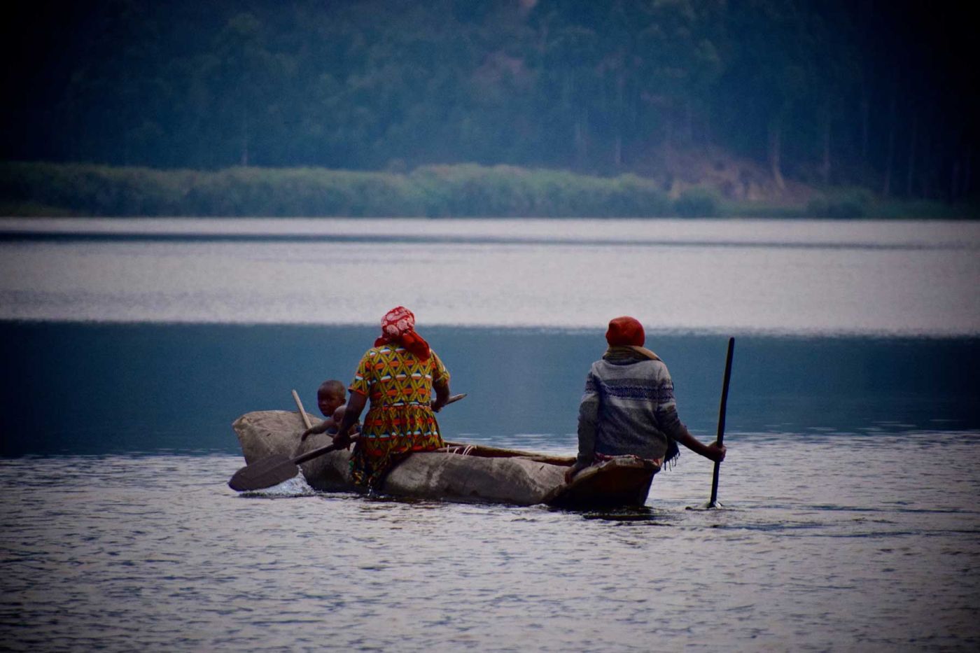 Um 17.15 Uhr machen wir eine Bootsfahrt zum „Sundowner“, aber bis auf den Beginn der Fahrt war es eher bedeckt und wir können die Virunga-Vulkane nur schwer hinter den Wolken erkennen...