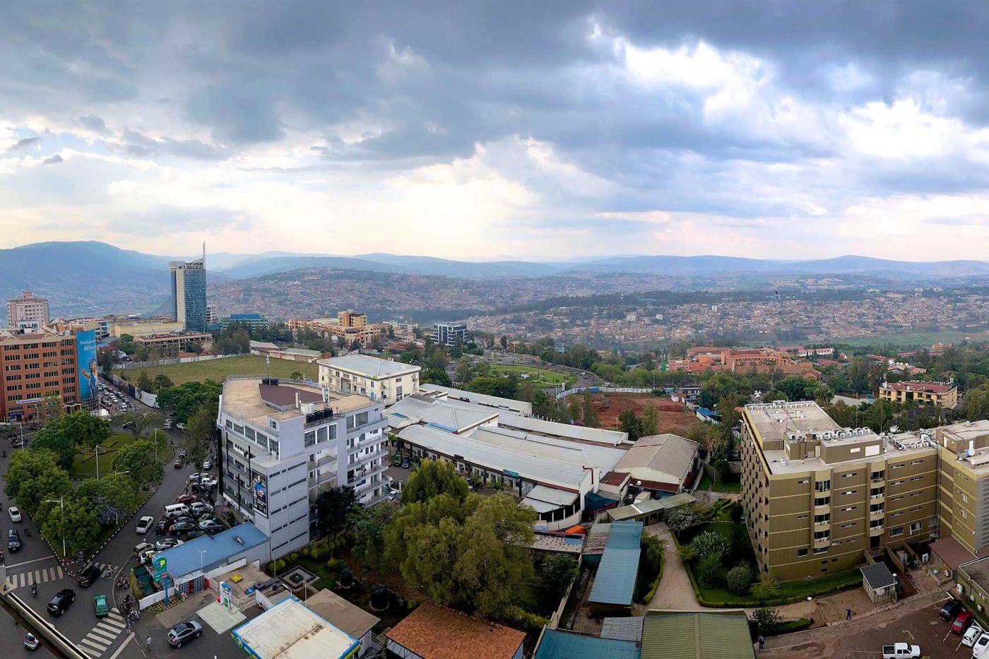 Danach fahren wir zum Mittagessen (ugandisch), und anschließend zum Ubumwe Grande Hotel mit herrlicher Aussicht über Kigali vom 12. Stock...