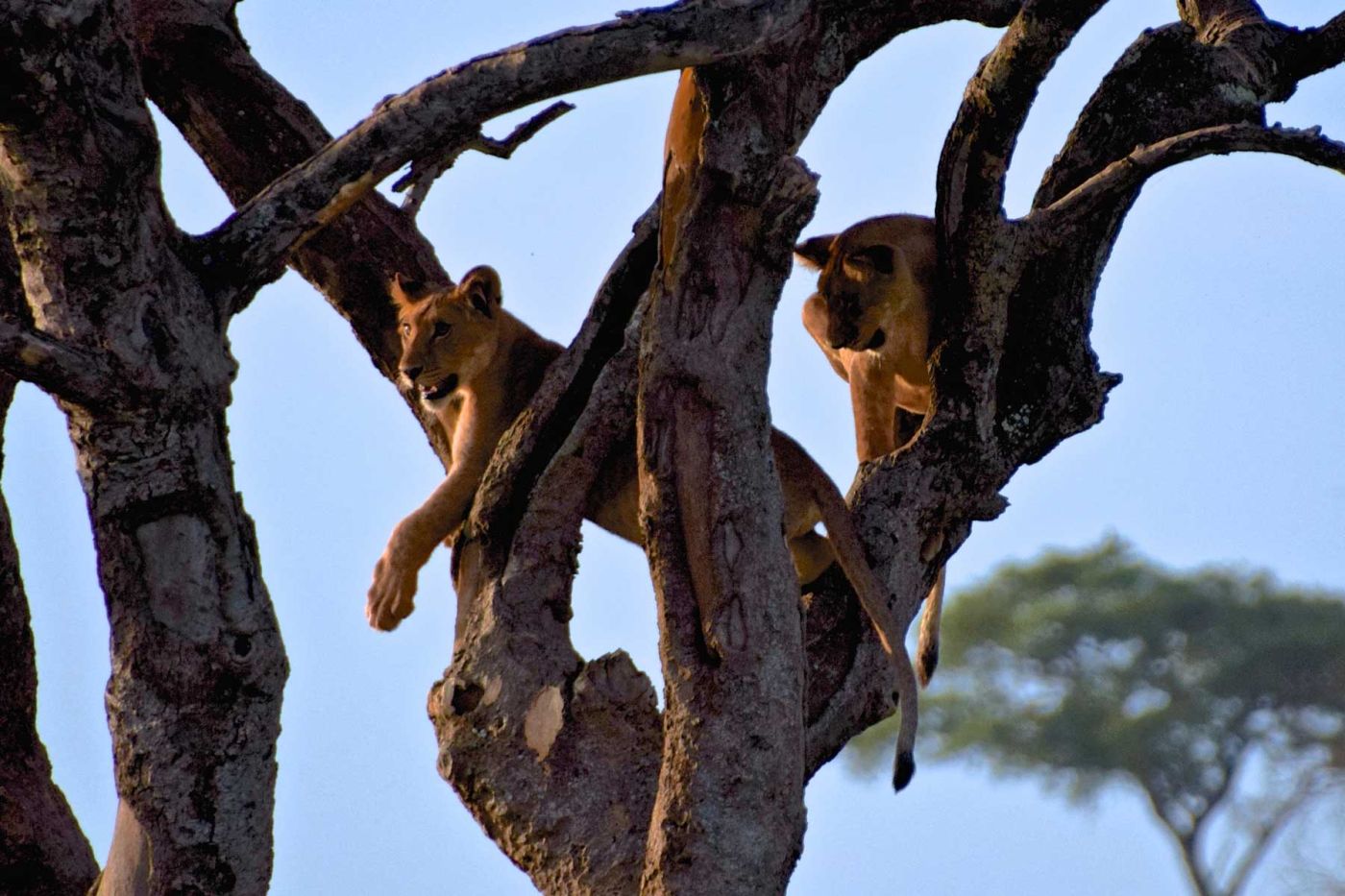 Nachdem diese Suche vergebens war sehen wir zum Schluß aber noch die seltenen Baumlöwen, eine Mutter mit 3 jungen Löwen (3 am Baum und ein kleines im hohen Gras). Eine tolle Entschädigung...
