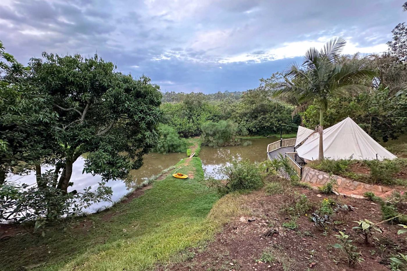 Die Lodge liegt direkt am See und hinter dem Schilfgürtel hört man die Hippos...