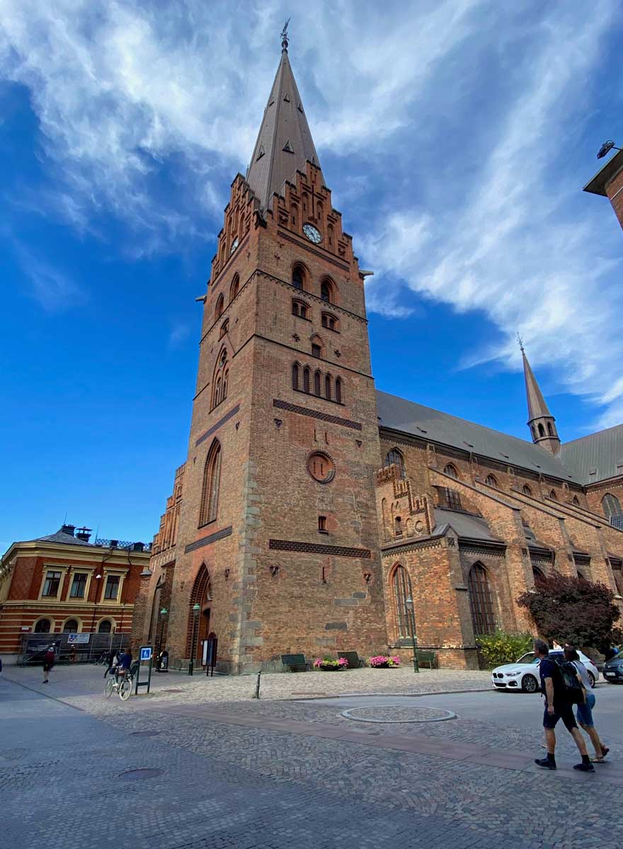 Nach dem Auspacken spazieren wir ins Zentrum und genießen im Lokal „Moosehead“ am Lilla Torg, in großen Ohrensesseln mit Blick auf den Platz, den Ausblick. Anschließend spazieren wir über den Stortorget zur Sankt Petri Kyrka und dann wieder zurück zum Hotel.