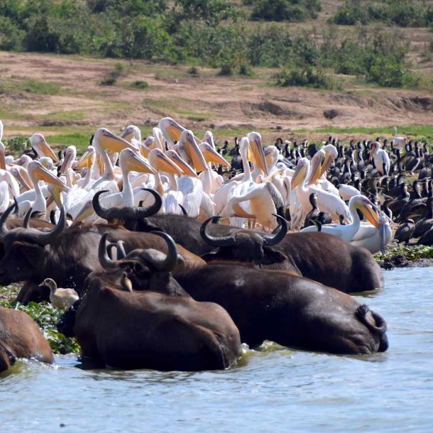 Uganda hat mit den Grassavannen im Queen Elizabeth Nationalpark, den rauschenden Wasserfällen im Murchinson Nationalpark, verschiedensten Primatenarten und seiner sattgrünen Landschaft eine ganze Perlenkette an Naturschönheiten zu bieten.