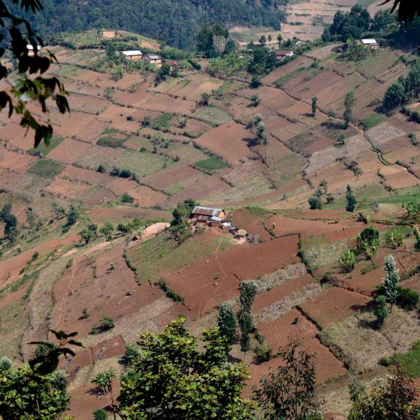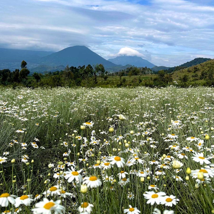 Das Nachbarland Rwanda ist mit der Bergkette der Virunga-Vulkane nicht weniger beeindruckend.