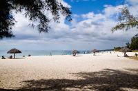 Da es mittlerweile wolkenlos und sehr sehr warm geworden ist, flüchten wir aus der Stadt und fahren zum Strand von Flic en Flac.