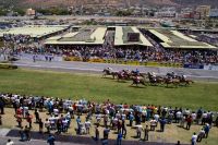 Anschließend geht's hinunter zur Pferderennbahn Champ de Mars, auf welcher jeden Samstag Galopprennen stattfinden. Der Parkplatz ist mitten in der Rennbahn und wir gehen über die Rennbahn zur Haupttribüne.