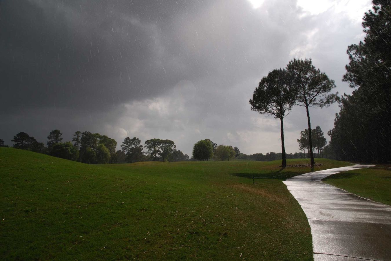 Die ersten 9 Loch nennen sich „Highlands“, die zweiten 9 Loch „Magnolia“. Diese spielen wir nach dem Regen. Im Shop kaufen wir noch Regenhüllen für das Bag. Der Platz ist triefnass und es ist dunkel, als wir das Clubhouse erreichen. Wir sind wieder die letzten Gäste…