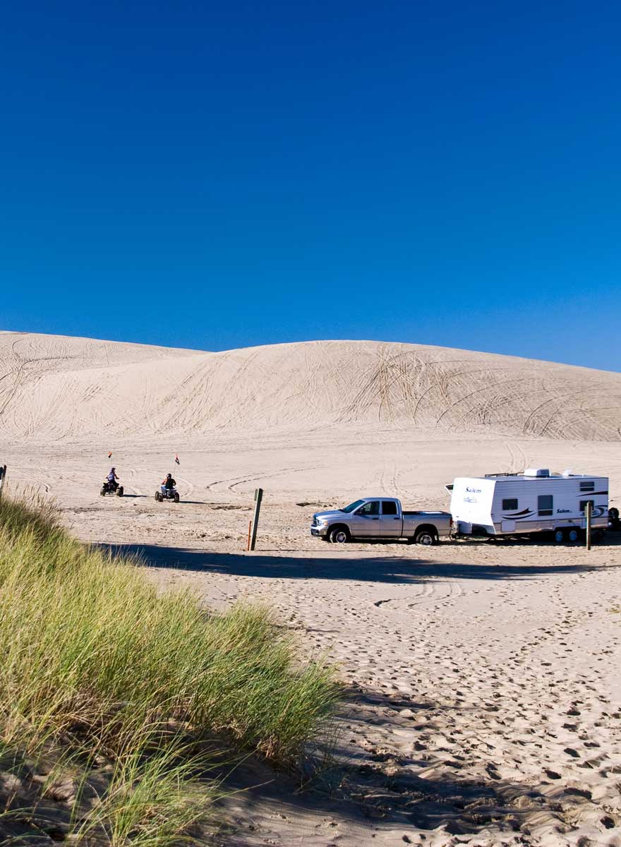 Hinter Florence geht's durch riesige Dünenlandschaften. In den Umpqua Dunes kann man mit Strandbuggys durch die Dünen brausen.