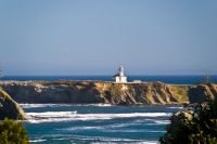 Der Leuchtturm von Cape Arago steht auf einem kleinen Inselchen in 35 m Höhe über dem Meer, direkt gegenüber von Gregory Point.