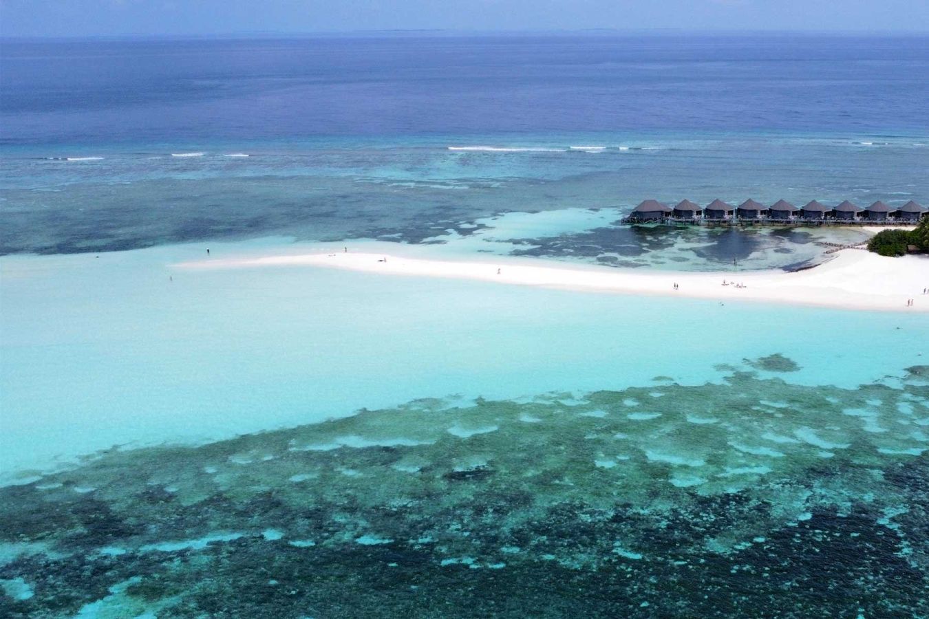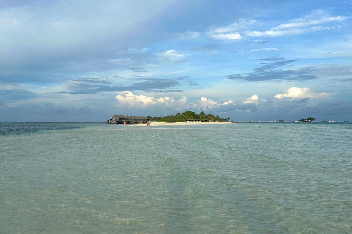 Am Westende der Insel erstreckt sich eine Sandbank ins Meer, die fast bis zur nächsten Insel Hurawalhi verläuft. Bei Ebbe kann man fast einen Kilometer ins Meer hinaus wandern...