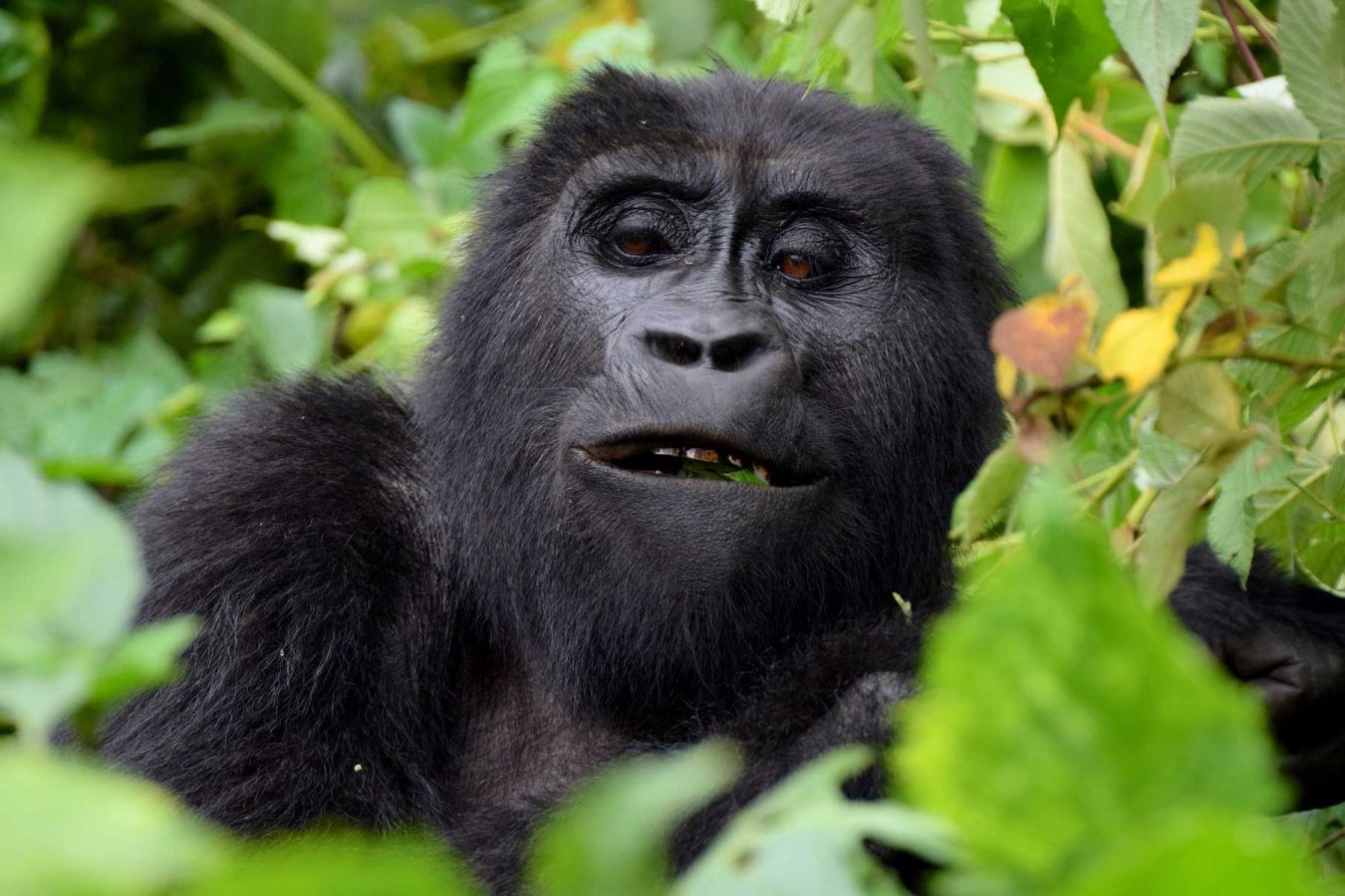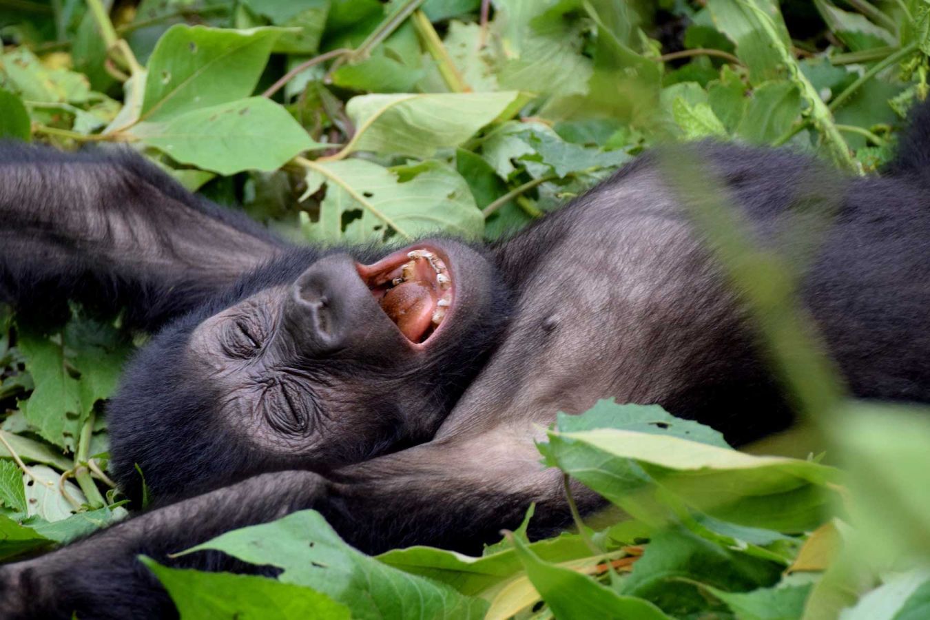 Wir sehen einen Silberrücken, 4 Weibchen und 3 Babies und können bis auf 2 Meter an sie ran. Es ist ein unglaubliches Erlebnis diesen Menschenaffen in ihrem natürlichen Lebensraum zu begegnen...