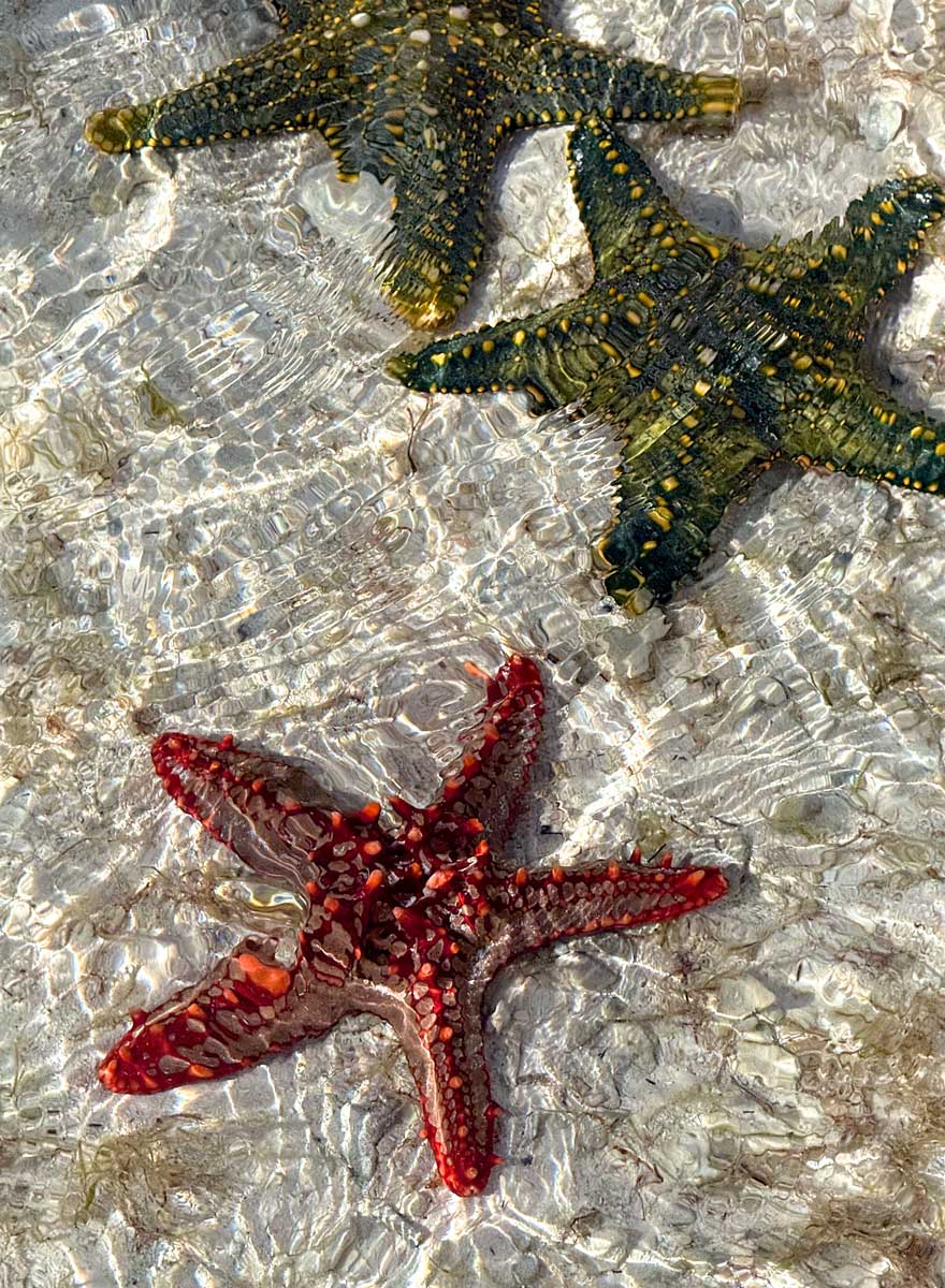 Am Morgen wollten wir bei Ebbe nur am Strand spazierengehen. Dann hat uns ein Einheimischer die Tierwelt bei Ebbe gezeigt: Seeigel, Seegurken, Seeschlange, eine Art Oktopus der Tinte versprüht, Seesterne,...
