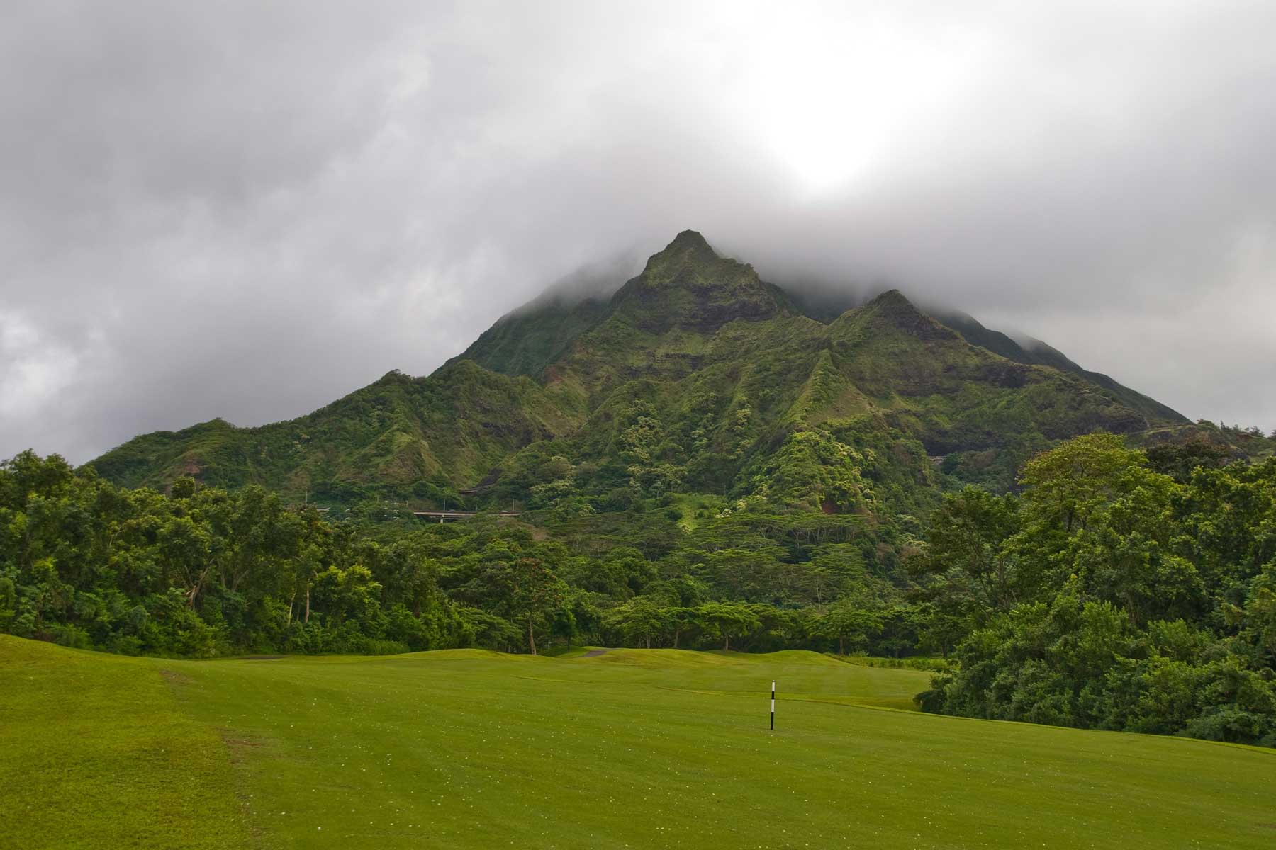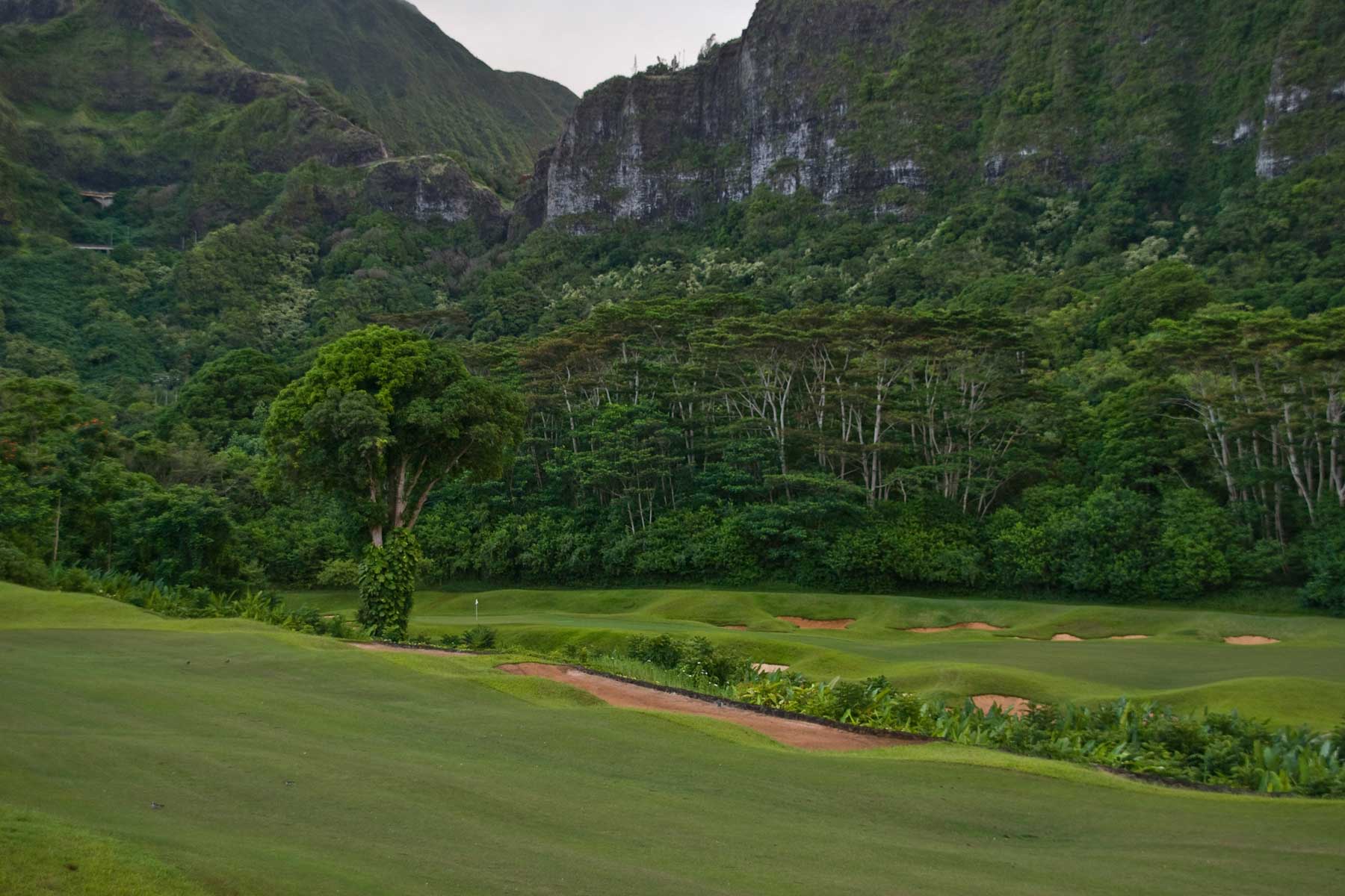 Einer der schwersten Courses auf O'ahu, direkt an den dunkelgrünen Berghängen der Ostseite der Insel...