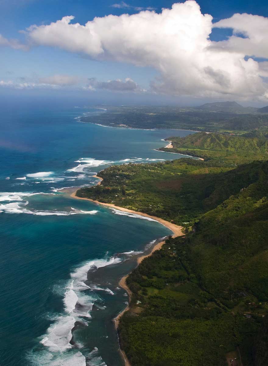 Mit sanfter Anmut und Leichtigkeit hebt der Helikopter vom Hubschrauberlandeplatz ab. Bereit machen! Hier kommt der beeindruckendste Flug Ihres Lebens! Erkunden Sie den Hafen von Nawiliwili, den berühmten Waimea Canyon, die Hanalei Bay, das Princeville Resort, den Krater am Mount Waialeale und die berühmte Küste von Na Pali. Fliegen Sie durch Regenbögen, über Wasserfälle, um Klippen herum und über Schluchten. Wenn Sie glauben, alles gesehen zu haben, bereiten Sie sich auf die unglaubliche Landung bei Jurassic Falls vor! Berühmt geworden durch den Dinosaurierfilm von Steven Spielberg, sind diese Wasserfälle 400 Fuß hoch! Ihre Größe kann man erst bei der Landung richtig erkennen. Ihr Pilot setzt den Vogel ab und führt Sie über einen Dschungelpfad zum Fuß der Wasserfälle. Spüren Sie den leichten Inselnebel und bestaunen Sie einen der bekanntesten Wasserfälle von Kauai. Island Helicopters Kauai ist das einzige Unternehmen, das an diesem Standort landen darf!