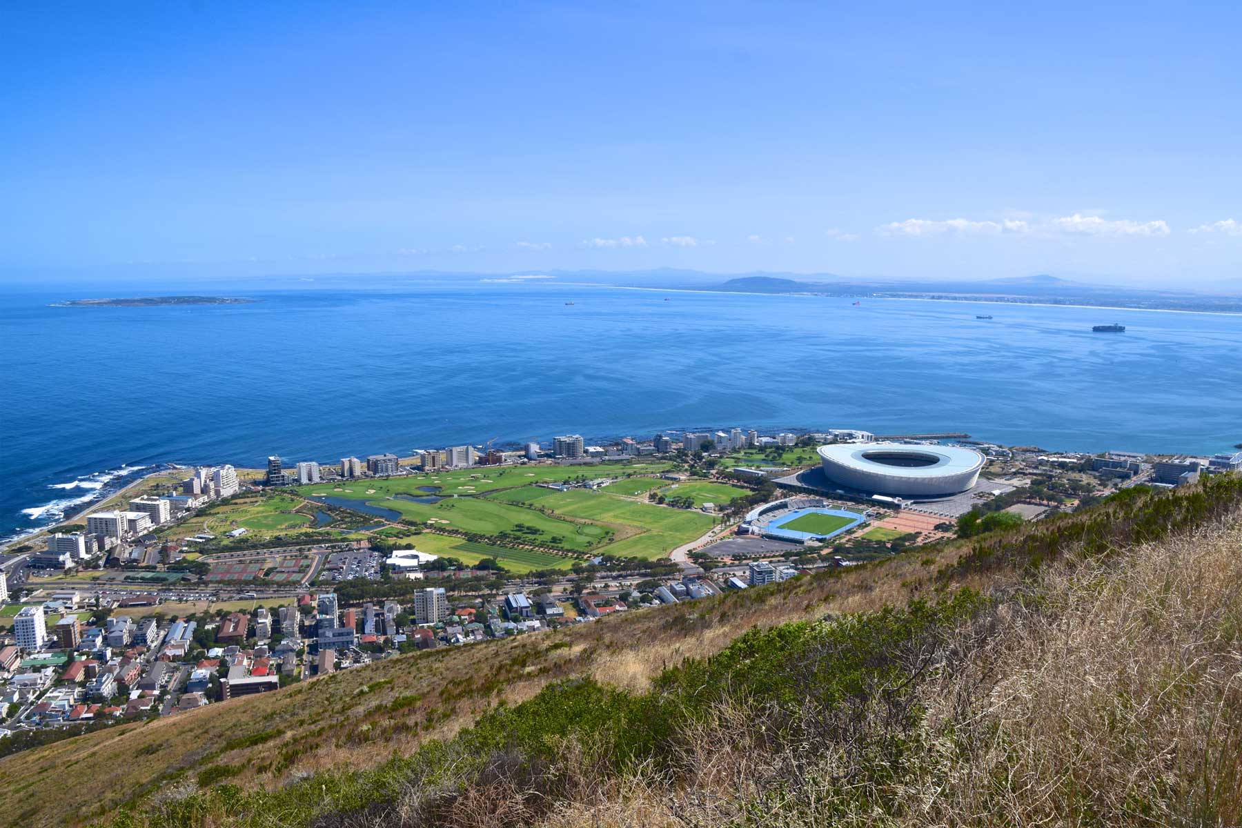 Es gibt viele Kapstädter, die schon Jahrzehnte nicht mehr auf den Tafelberg gewesen sind, dafür aber umso öfter auf dem Signal Hill. Dieser Bergrücken liegt parallel zum Atlantic Seaboard mit dem Stadtteilen Sea Point und Green Point. An seinen Hängen ist nur vereinzelt ein Baum zu sehen, die Vegetation ist vorrangig Fynbos.