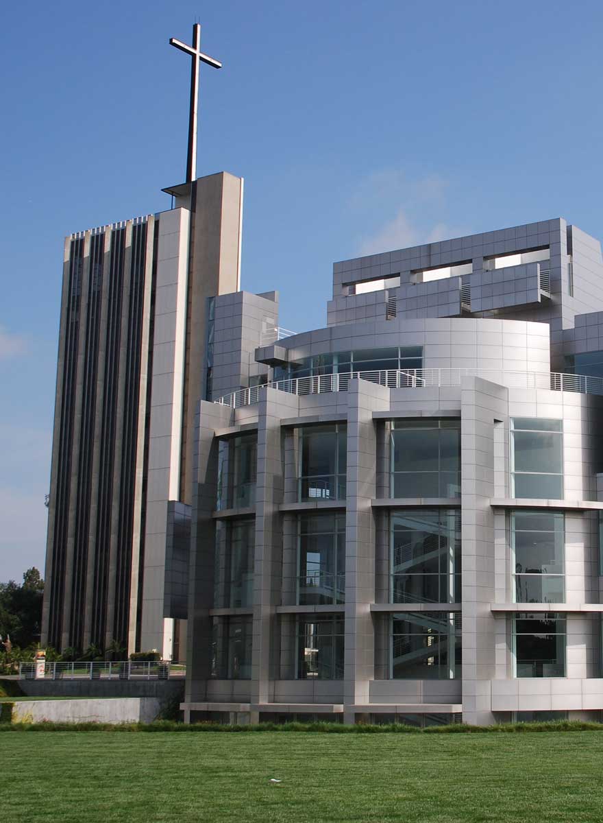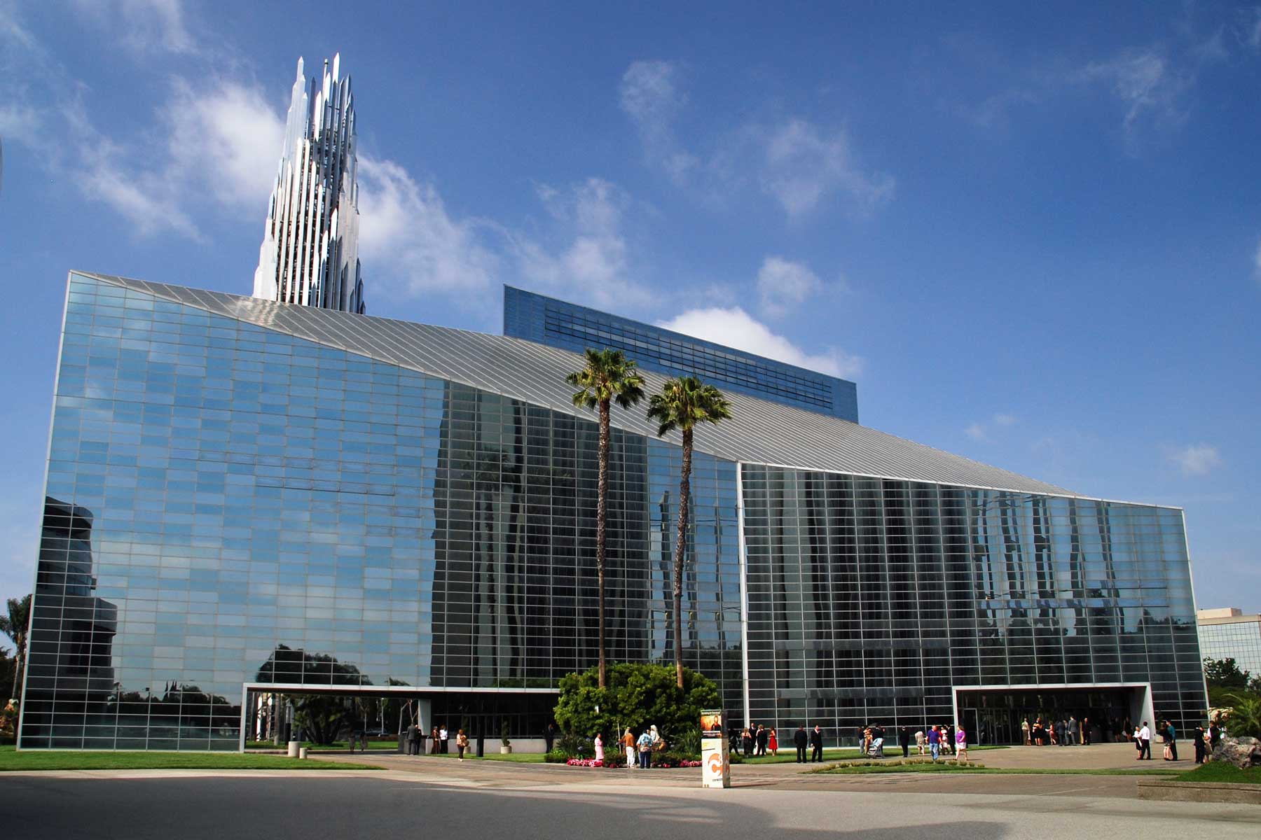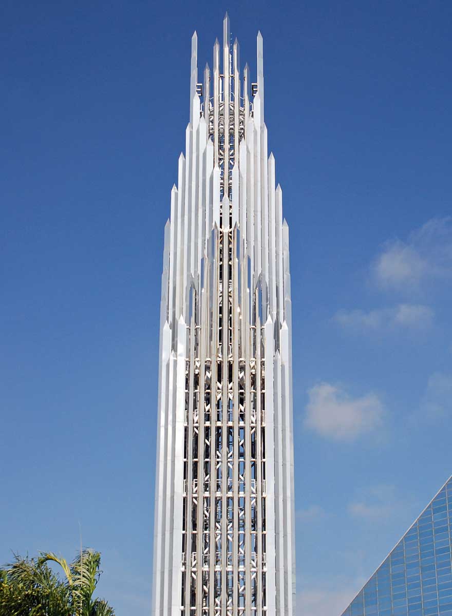Die „Crystal Cathedral“, 1977 bis 1980 nach einem Entwurf von Philip Johnson errichtet, ergänzte einen bereits vorhandenen Komplex mit diversen Bauten von Richard Neutra, zu dem neben einem kleineren Kirchengebäude u. a. der „Tower of Hope“ gehört, ein zwölfgeschossiger Turm mit Verwaltungsräumen, einer Kapelle, einer 24-Stunden-Seelsorge und einem 30 Meter hohen Kreuz auf dem Dach. Johnson hatte sich durch eine Entwurfszeichnung von Mies van der Rohe aus dem Jahr 1921 für ein gläsernes „Turmhaus an der Friedrichstraße“ inspirieren lassen.