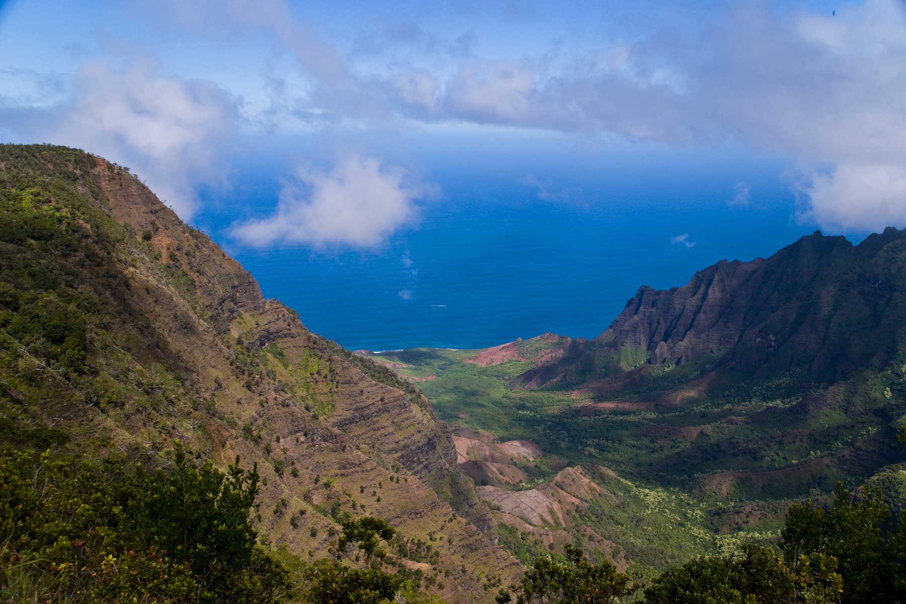Kalalau Lookout ist nicht nur ein weiterer Aussichtspunkt im Waimea Canyon, wie viele Erstbesucher oft glauben. Es ist ein Blick in das Herz des Kalalau-Tals – eines der meistfotografierten und bekanntesten Täler in ganz Hawaii. Der Kalalau Lookout ist mit 4.000 Fuß auch die höchste Erhebung, die die meisten Menschen auf Kauai auf der Straße erreichen. Wie bereits erwähnt, finden Sie hier eine der großartigsten Aussichten in ganz Hawaii. Das Kalalau-Tal ist mit einer Breite von drei Kilometern das größte Tal der Insel. Erstaunlicherweise war es bis 1919 bewohnt