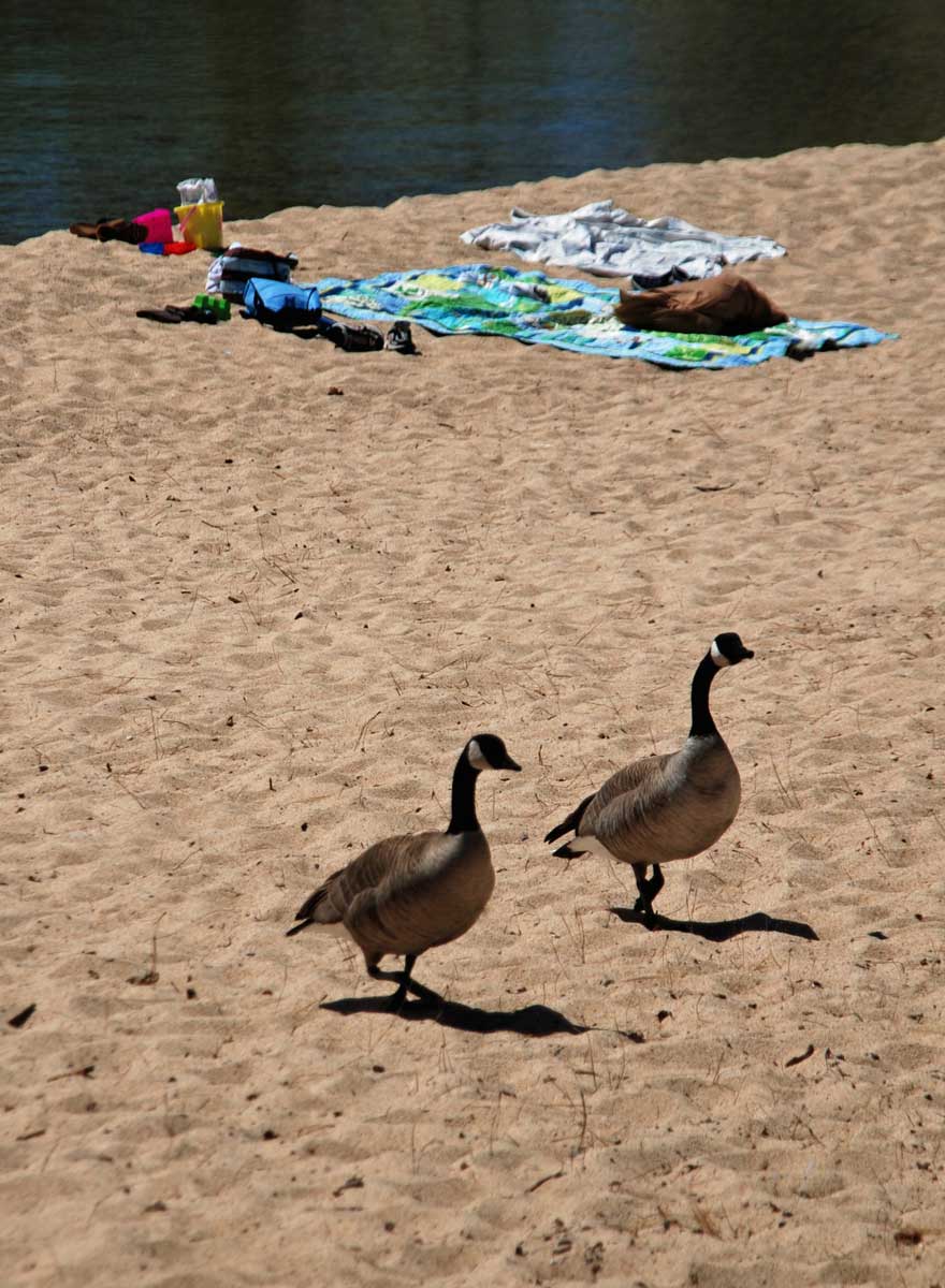 oben: Strand; links: Lakeshored Blvd; rechts: Strandbesucher; unten: Stege