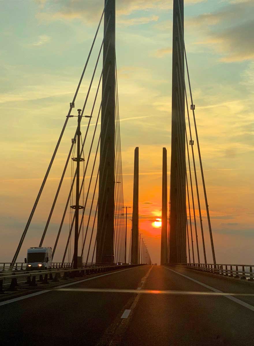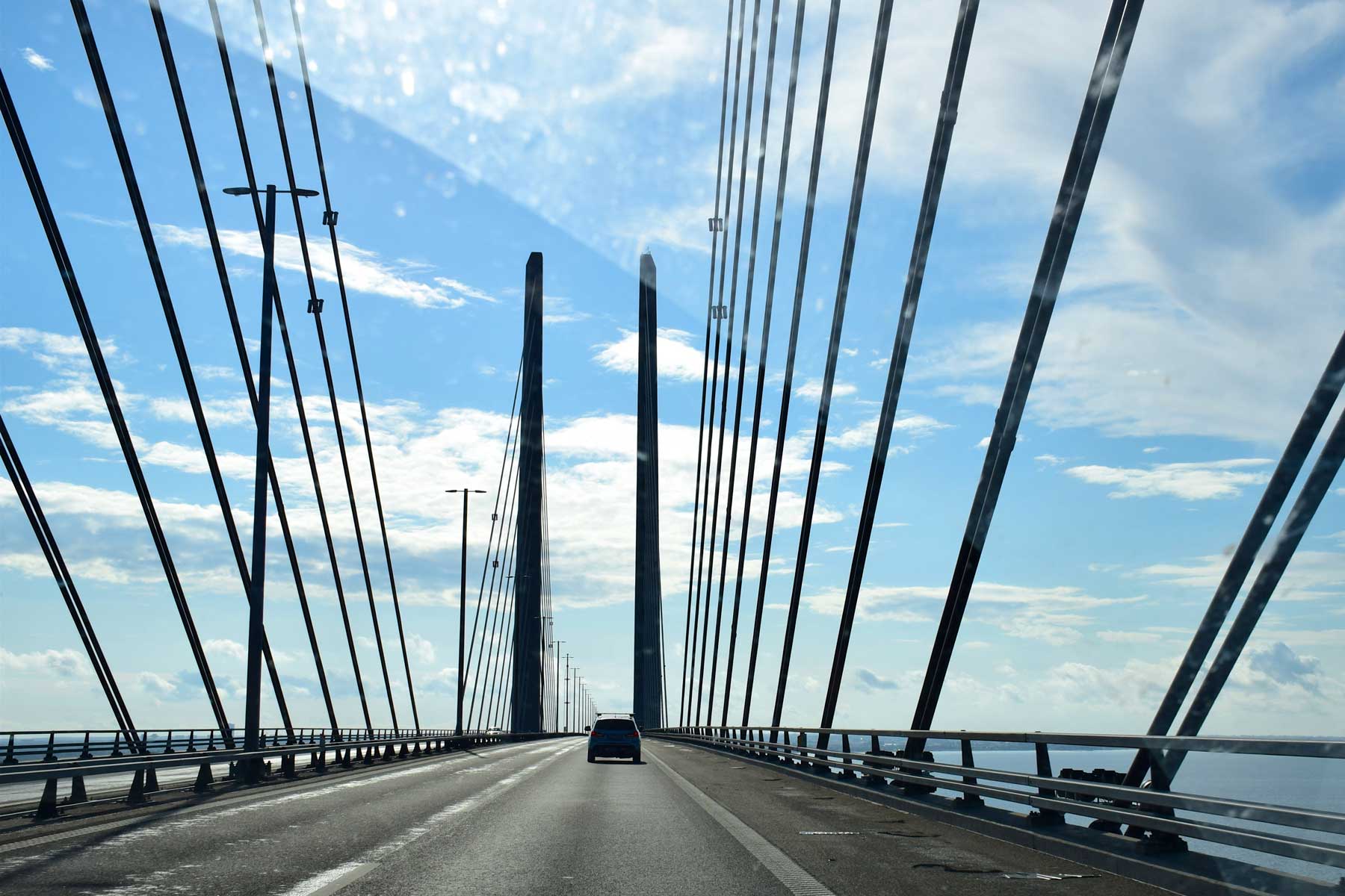 Die Öresundbrücke ist die weltweit längste Schrägseilbrücke für kombinierten Straßen- und Eisenbahnverkehr. Sie bildet zusammen mit dem Drogdentunnel und der künstlichen Insel Peberholm die mautpflichtige Öresundverbindung, welche die dänische Hauptstadt Kopenhagen mit Malmö in Schweden verbindet und damit maßgeblich die Öresundregion erschlossen hat. Die Grenze verläuft 883 Meter westlich vom westlichen Pylonenpaar und ist durch Schilder markiert, die sich an der jeweils nächstliegenden Schilderbrücke befinden. Die Brücke wurde am 1. Juli 2000 dem Verkehr übergeben.