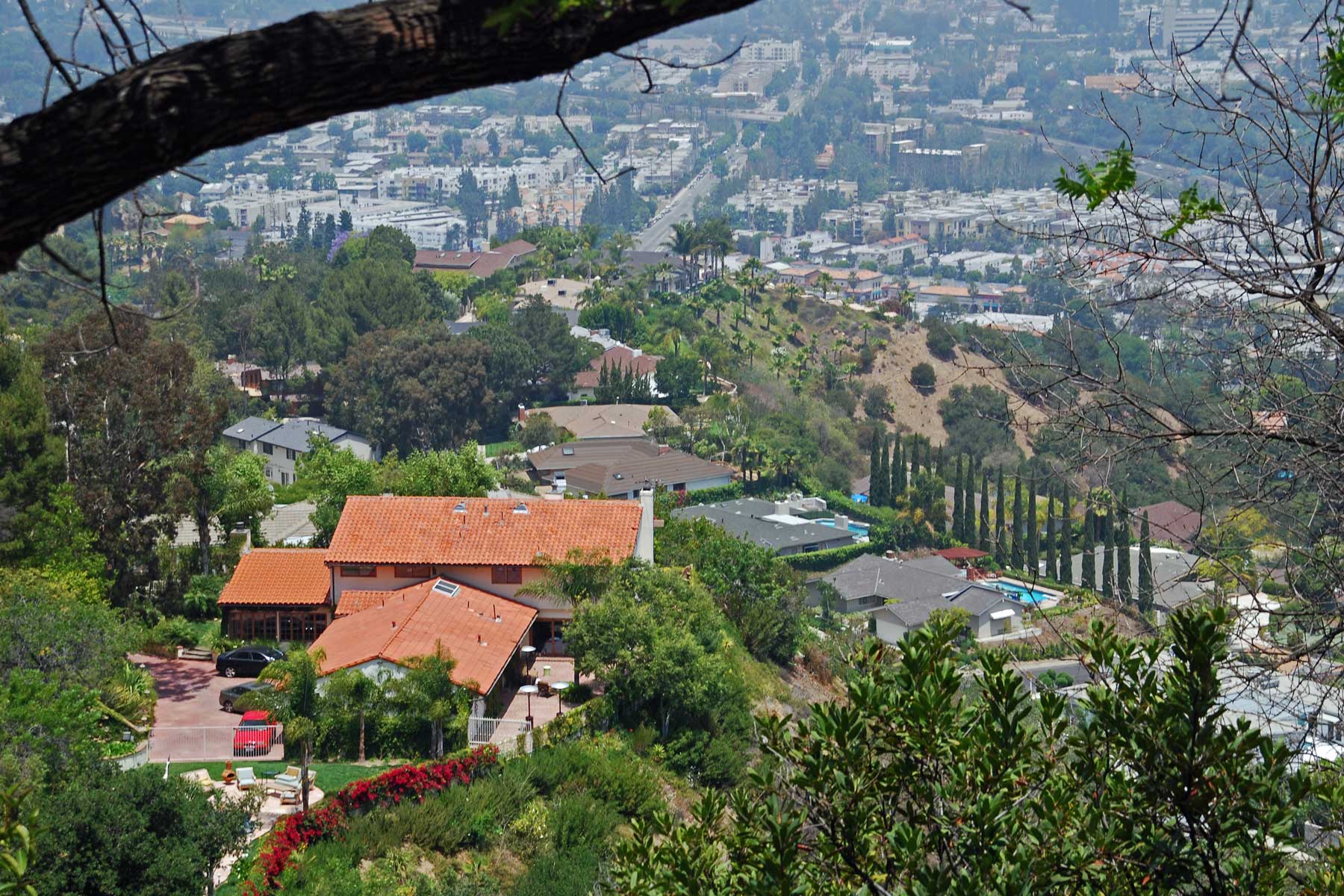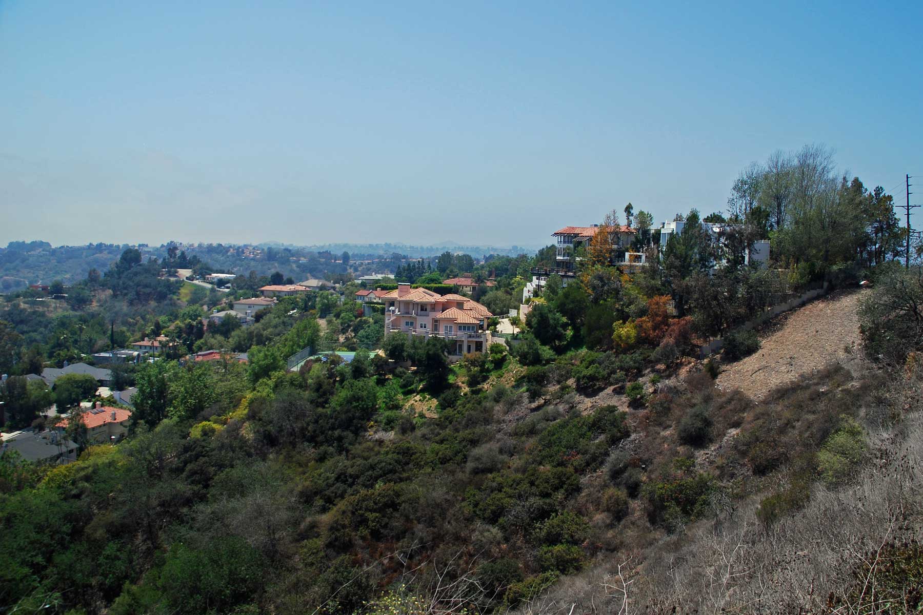 oben: Haus & Pool; links: Zufahrt zu No 16660; rechts: Woodland Hills; unten: Häuser am Abhang