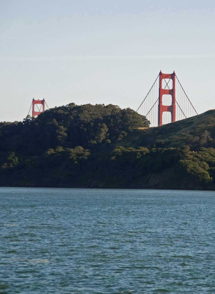 oben: Alcatraz; links: Haus in Tiburon; rechts: Brückenpfeiler; unten: Golden Gate Bridge