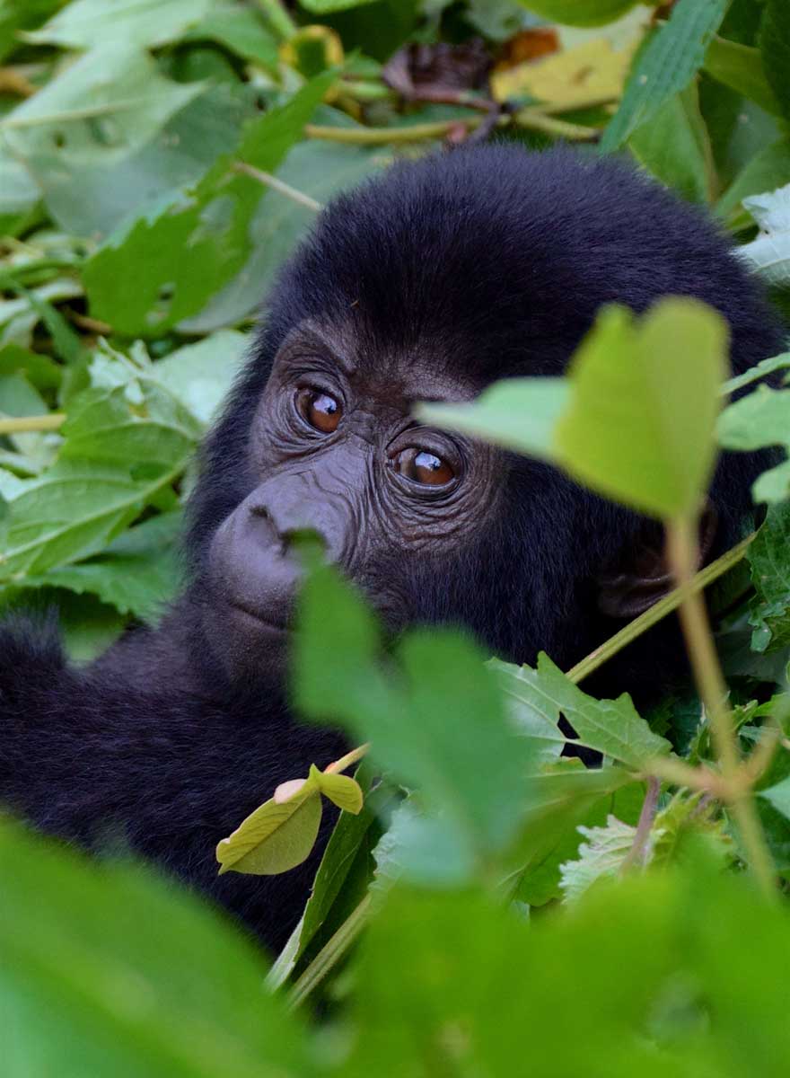 Die Besucherzahlen für das Gorilla-Tracking sind zum Schutz der Tiere und deren Lebensraum nach wie vor stark limitiert (max 8 Personen) und der Aufenthalt bei den Gorillas auf eine Stunde begrenzt. Die Begegnung mit diesen sanften Riesen und die respektvolle Teilnahme an ihrem Leben sind ein ergreifendes Erlebnis und entschädigen die abenteuerliche Pirsch durch den Impenetrable Forest, den undurchdringlichen Wald.