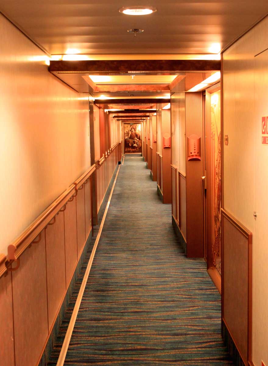 oben: Deck 10; links: Heck; rechts: Gang; unten: Bar