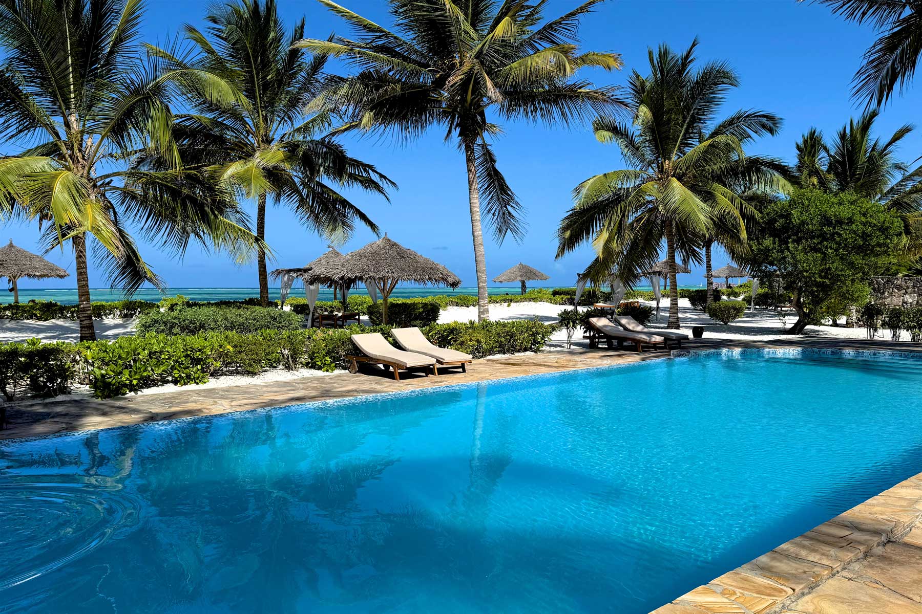 Das Next Paradise Boutique Resort befindet sich an einem der schönsten weißen Sandstrände Sansibars, direkt am Indischen Ozean und nur ein paar Hundert Meter von einem Korallenriff entfernt. Das Resort ist bekannt für seine schlichte Eleganz, das ausgezeichnete Essen und die intime und ruhige Atmosphäre mit prächtigen Zimmern, die schön möbliert und mit Klimaanlage und WLAN ausgestattet sind. Die 25 Zimmer liegen alle in Strandnähe und Sie können aus nicht weniger als vier Pools für ein erfrischendes Bad wählen. Nicht zuletzt wird Sie der Küchenchef mit seiner mediterranen Küche mit einem Hauch von Swahili-Aromen überraschen. Next Paradise ist Sansibars romantischer Zufluchtsort!