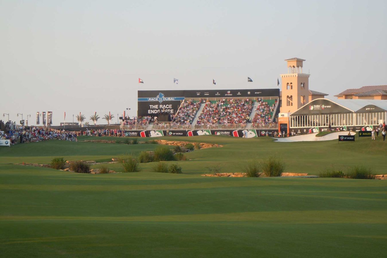Nach dem Frühstück geht’s zum Jumeirah Estates Golf Club, denn auf dem Earth Course wird das Finale der European Golf Tour, das „Race to Dubai“, ausgetragen.