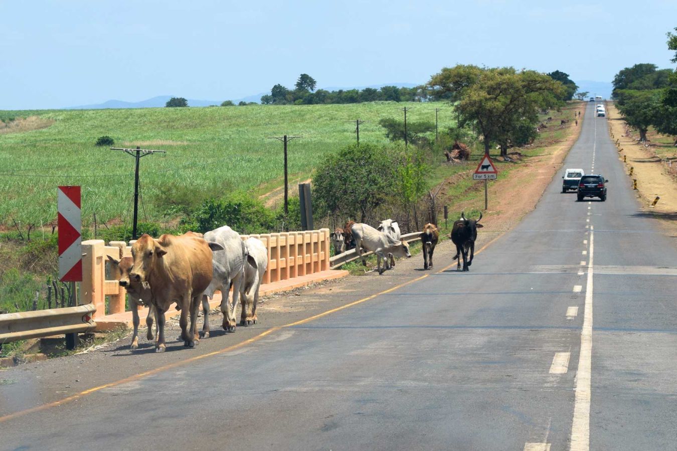 Auf der MR1 geht's über Pigg's Peak, Maguga Dam nach Mbabane. Bei der Fahrt ist Vorsicht geboten, denn auf der Fahrbahn stehen laufend Kühe, Ziegen, etc. Mbabane liegt auf 1.200 m Seehöhe. Von dort fahren wir auf der M3, der einzigen Autobahn in Swaziland, bis zum Ezulwini Valley, das auch "Tal des Himmels" genannt wird. Ca. 5 km nach dem Royal Swazi Golf Course biegen wir rechts in den Mantenga Drive ab.