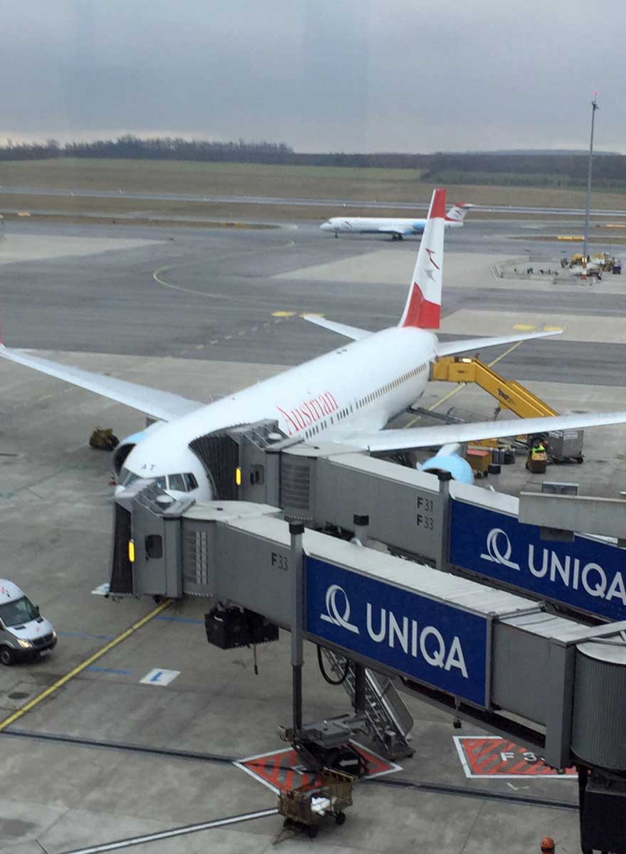 Übernachtung im NH-Hotel am Flughafen Wien. Nach dem Ein-Checken (Koffer aufgeben) am Vorabend können wir gemütlich zum Terminal 3 bummeln und frühstücken. Eine Abreise ohne Stress...
