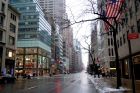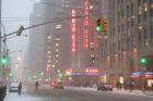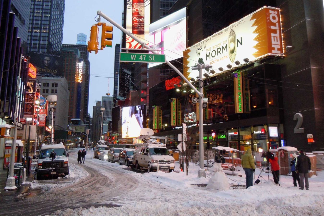 Auf der Suche nach einem offenen Café und den TV-Kamera-Teams mache ich einen Spaziergang durch die verschneiten Straßen (Times Square, 7th Avenue, 52nd Street, 5th Avenue, 46th Street, Times Square).