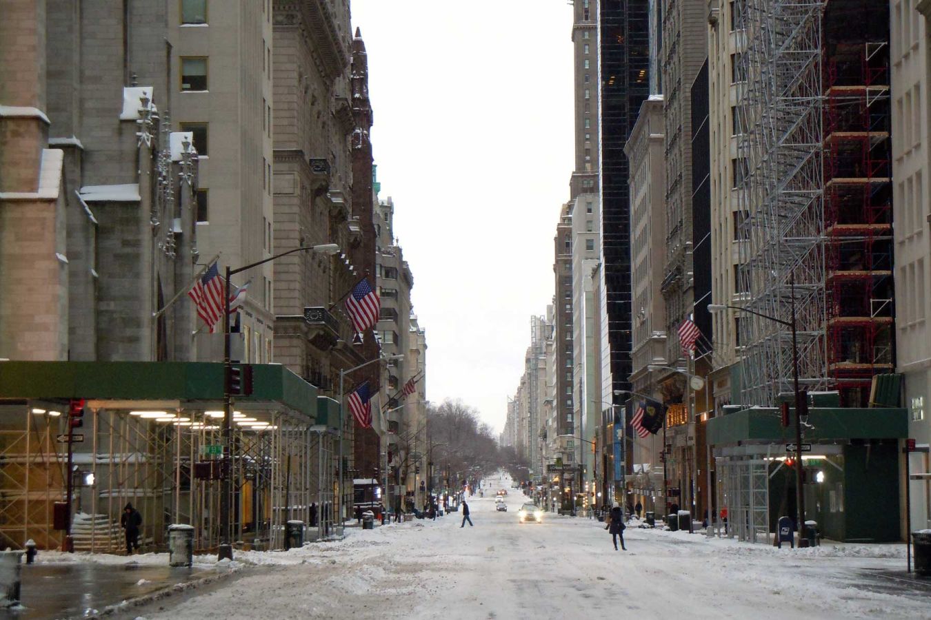 In der Nacht schneit es in Manhattan zwar heftig, doch gegen 07.30 Uhr ist es mit dem Schneefall vorbei. Im Vergleich zu anderen Regionen (Long Island 60 cm, Boston 90 cm) hat es in Manhattan nur 15-20 cm geschneit.