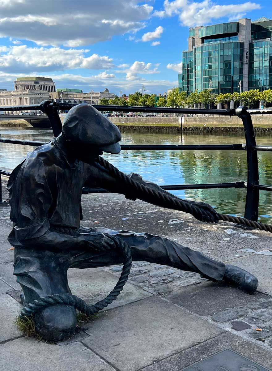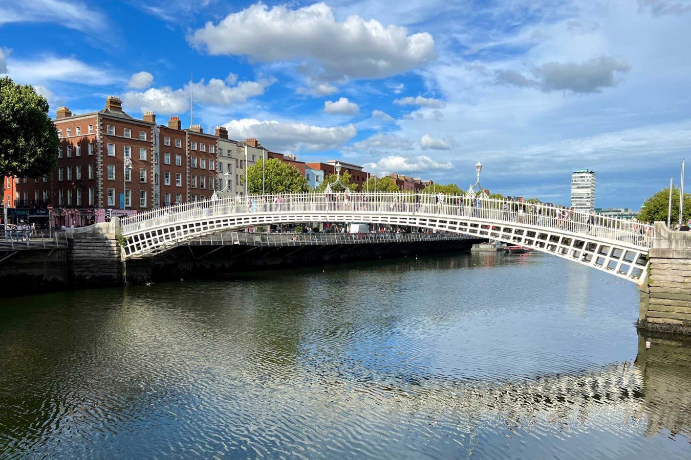 Nach einer kurzen Pause machen wir uns auf den Weg zum Sightseeing. Wir bummeln den Customer Quay entlang bis zur O‘Connell Street und dort bis zur Nadel 'The Spire'. Anschließend gehen wir dir Fußgängerzone in der Henry Street entlang, biegen in die Jervis Street ab und überqueren die Millennium Bridge (nahe der Ha‘Penny Bridge).
