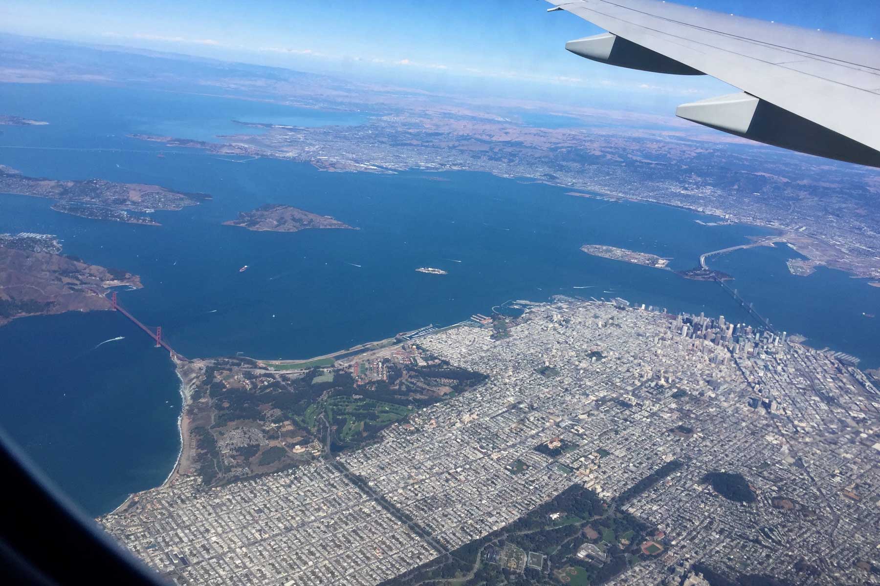 Beim Landeanflug haben wir einen traumhaften Blick über die gesamte San Francisco Bay und die Golden Gate Bridge. Wir landen pünktlich um 14.35 Uhr...