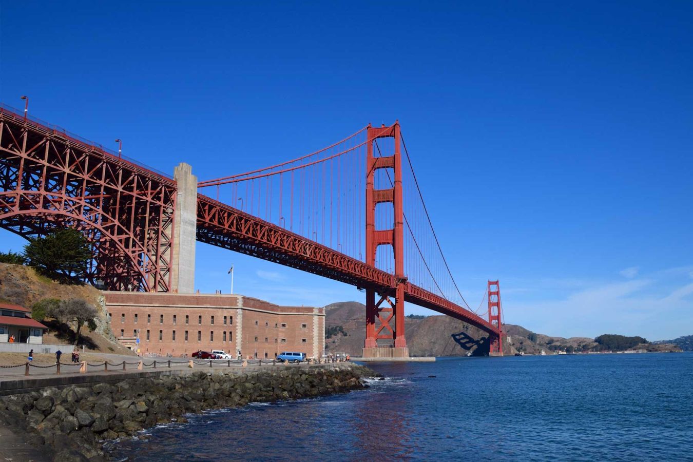 Heute machen wir zuerst Sightseeing im Westen von San Francisco: Palace of Fine Arts (errichtet für die Panama-Pacific International Exposition von 1915), Fort Point (Spaziergang bis unter die Golden Gate Bridge), Presidio, Seacliff, Palace of the Legion of Honor...