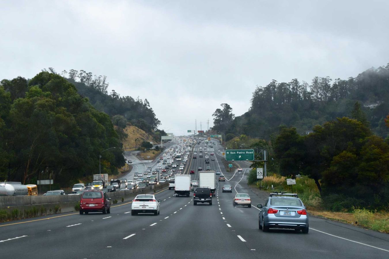 Der Rückweg führt über Muir Beach. Auf der weiteren Fahrt nach San Francisco fahren wir noch durch Sausalito durch, doch aufgrund des starken Regens sieht man kaum etwas. Auch einen kurzen Stopp beim Vista Point bei der Golden Gate Bridge müssen wir aufgrund des Regens verwerfen...