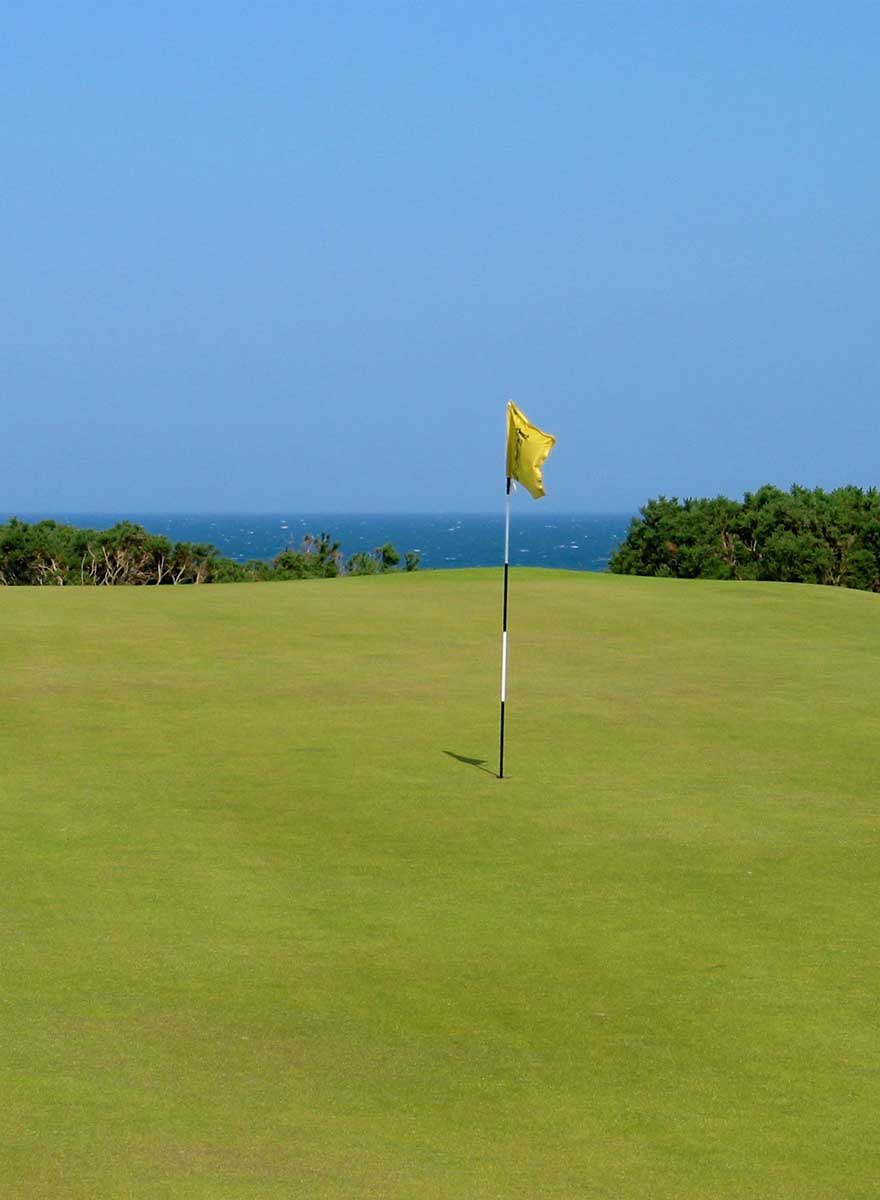 Viele tolle Löcher am Meer, riesige Bunker vor dem Grün, und Wind, Wind, Wind...