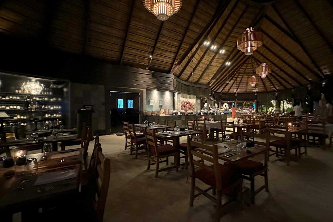Köstliche internationale und lokale Spezialitäten in einem romantischen Ambiente. Die exklusive Auswahl an Gerichten und die zauberhafte Atmosphäre im Inneren und auf der Terrasse machen das Restaurant zu einem attraktiven Ort für die Gäste der Sangu Wasservillen und Sangu Strandvillen mit Jacuzzi.