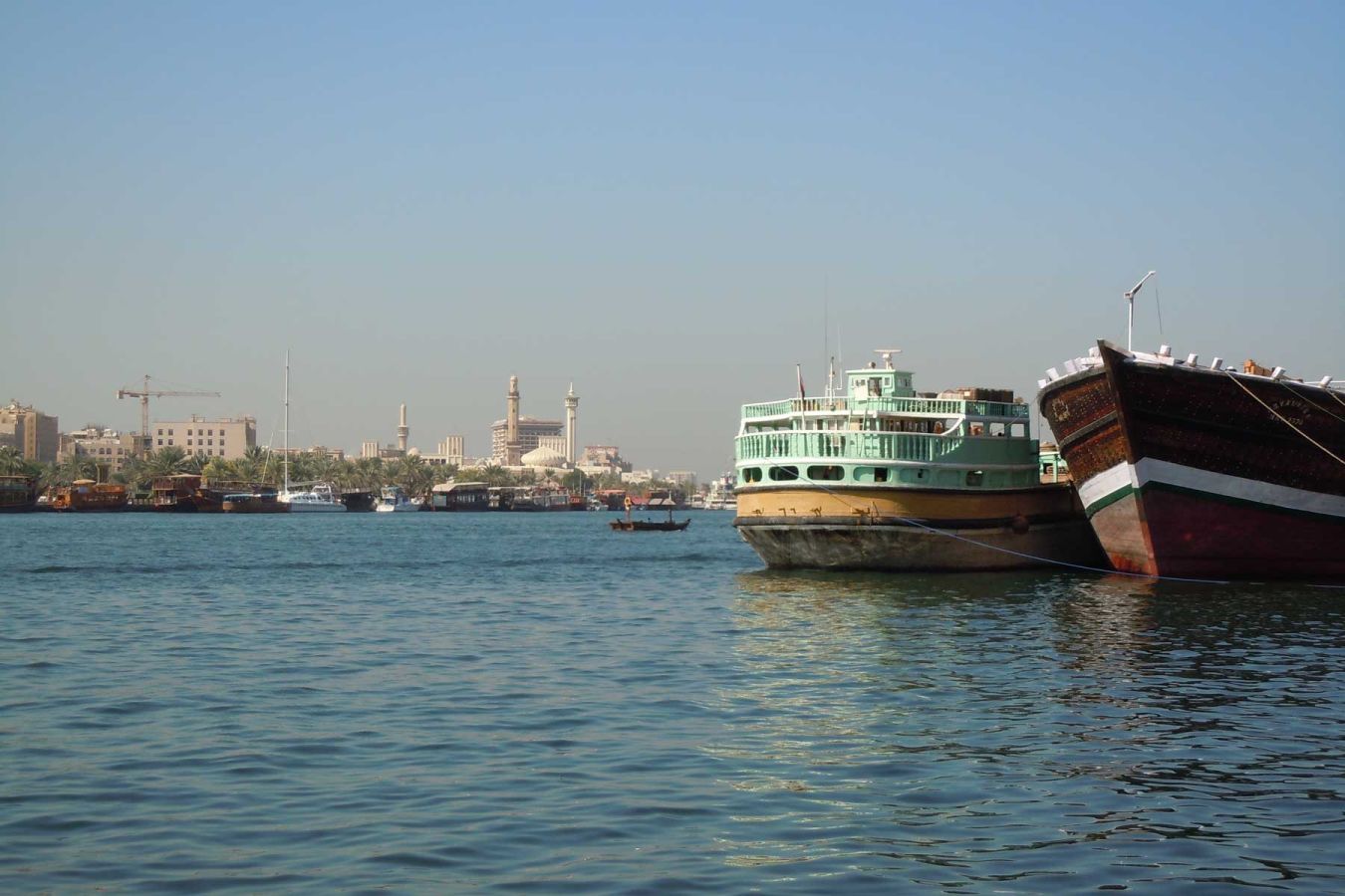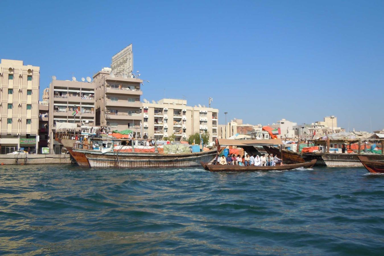 Am Vormittag geht's mit der Metro vom Deira City Center mit der Green Line bis zur Union Station. Weiter geht’s zu Fuß dem Dubai Creek entlang bis zur Abra Marine. Entlang des Creek stehen hunderte kleine Schiffe und es werden dort alle möglichen Waren be- und entladen.