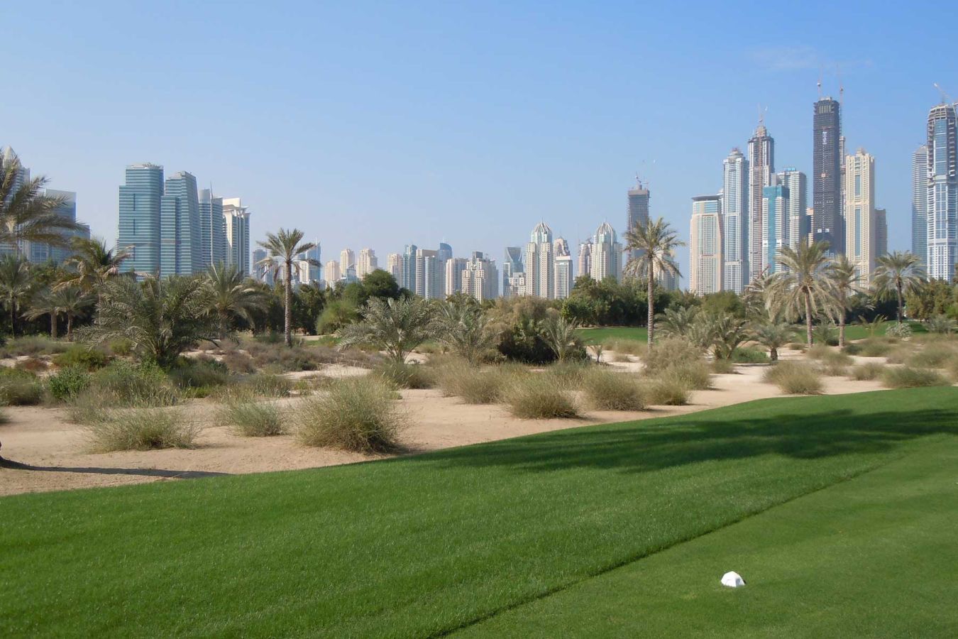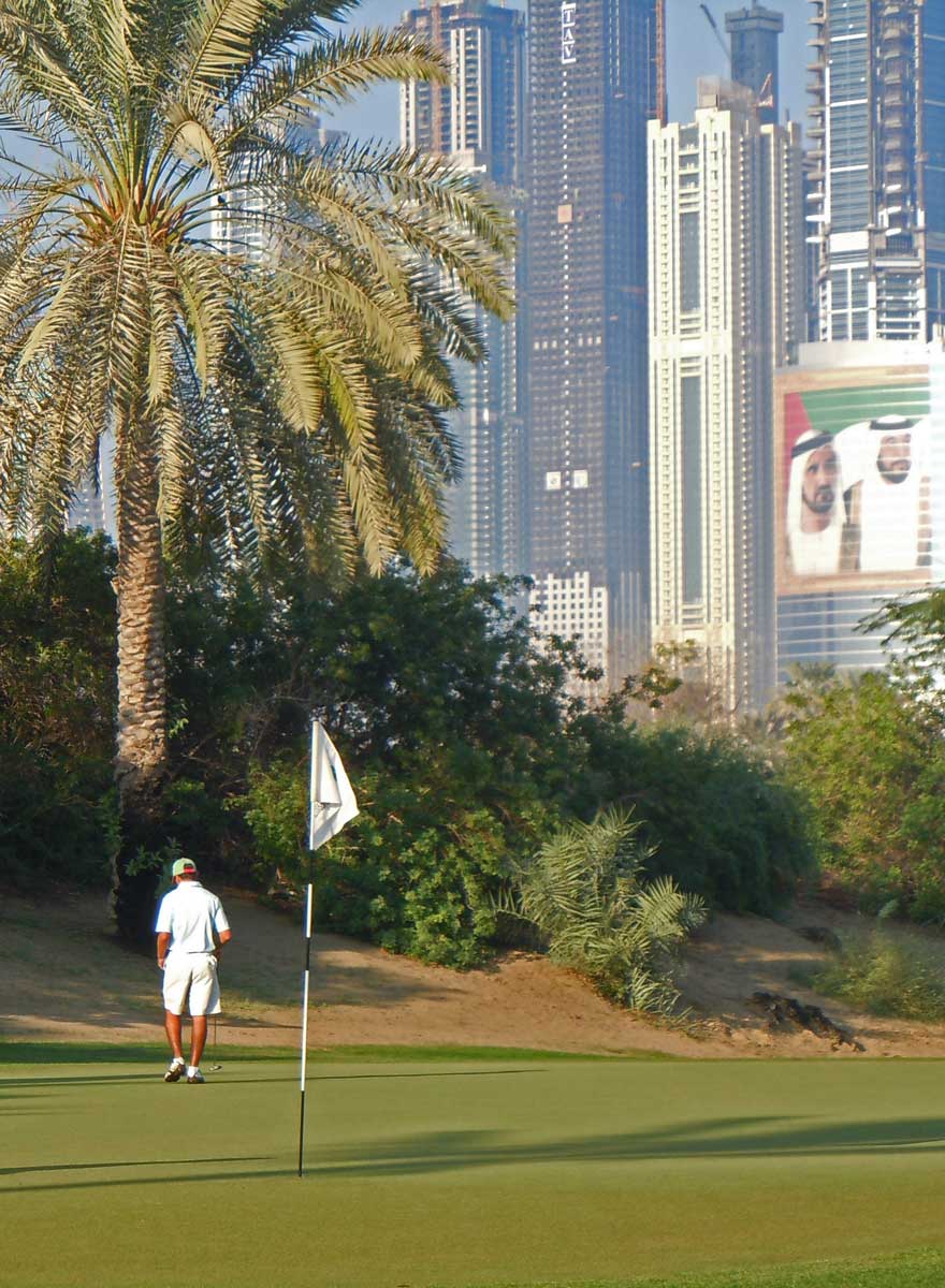 Um 07.40 Uhr ist Startzeit im Emirates Golf Club. auf dem Majlis Course, auf dem Anfang Februar die „Dubai Desert Classic“ ausgetragen werden. Ein tolles Platz mit herrlichen Ausblicken auf die umliegenden Wolkenkratzer...