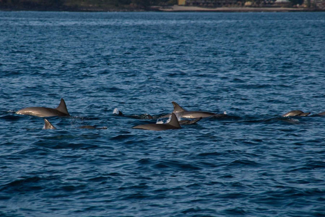 Unser Skipper telefoniert herum und plötzlich gibt er Vollgas Richtung Norden… nördlich von Flic en Flac sind Flipper & Co !!!