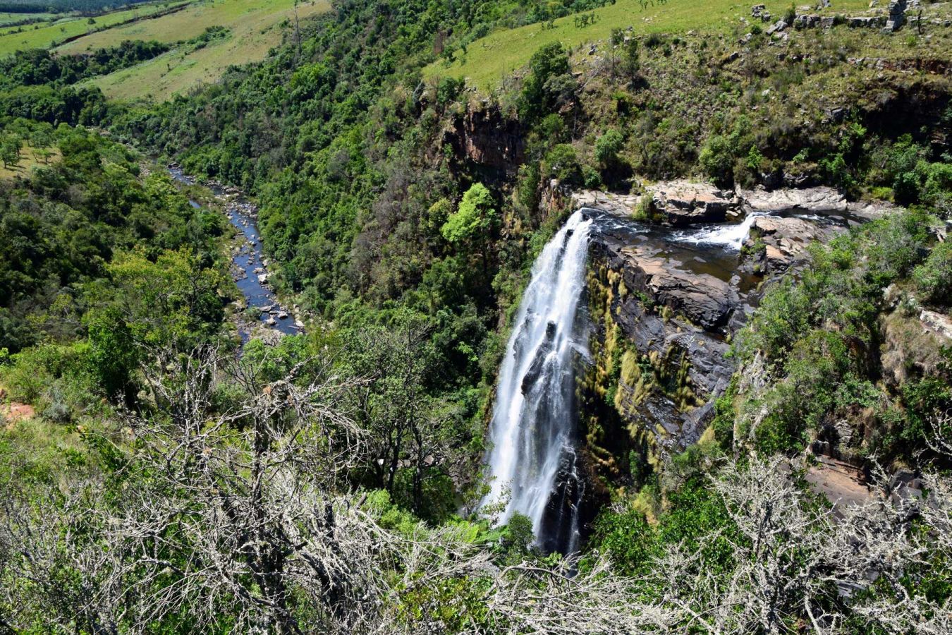 Nach einem tollen Frühstück und einer herzhaften Verabschiedung von der Chefin der Lodge machen wir uns auf den Weg zur Panorama Route, zuerst über die N4 zurück bis Nelspruit und dann über die R537 bis Sabie. Ab dort beginnt die R532, die Panorama Route. Diese führt an diversen Wasserfällen (Mac Mac Pools, Lisbon Falls und vielen spektakulären Canyons (God's Window an der R534) vorbei. Hauptsehenswürdigkeit sind jedoch die Three Rondavels beim Blyde River Canyon.
