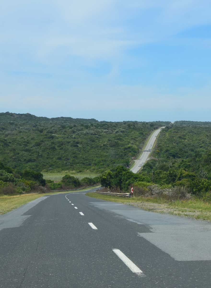 Ein weiterer wolkenloser Tag erwartet uns. Von der Lodge fahren wir auf der N2 weiter bis East London und anschließend auf der R72 weiter der Küste entlang bis Port Alfred. Es geht wieder laufend einen Hügel (Berg) hinauf und wieder hinunter. Die Landschaft ist schön grün. Wir erreichen jedoch öfters wieder eine Höhe, wo keine Bäume mehr wachsen, sondern nur mehr weite Grasflächen vorherrschen.