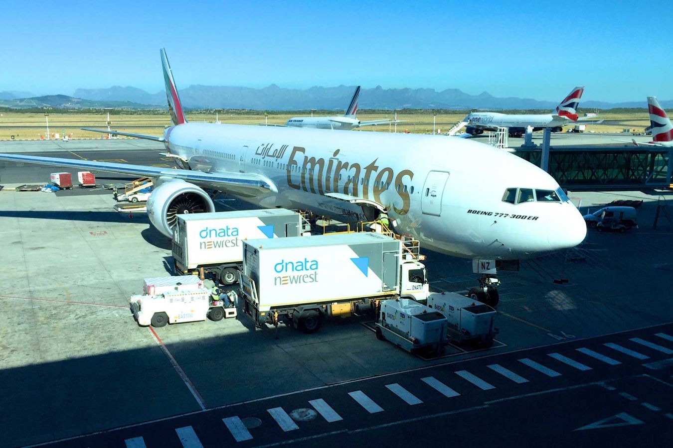 Um 15.00 Uhr machen wir uns auf den Weg über die N2 zum Cape Town International Airport. Um 18.10 Uhr geht uns Flug mit Emirates (EK 771) von Kapstadt nach Dubai. Nach dem Abheben macht die Maschine einen kleinen Schwenker über die Stadt für eine perfekte Aussicht auf die Bucht...