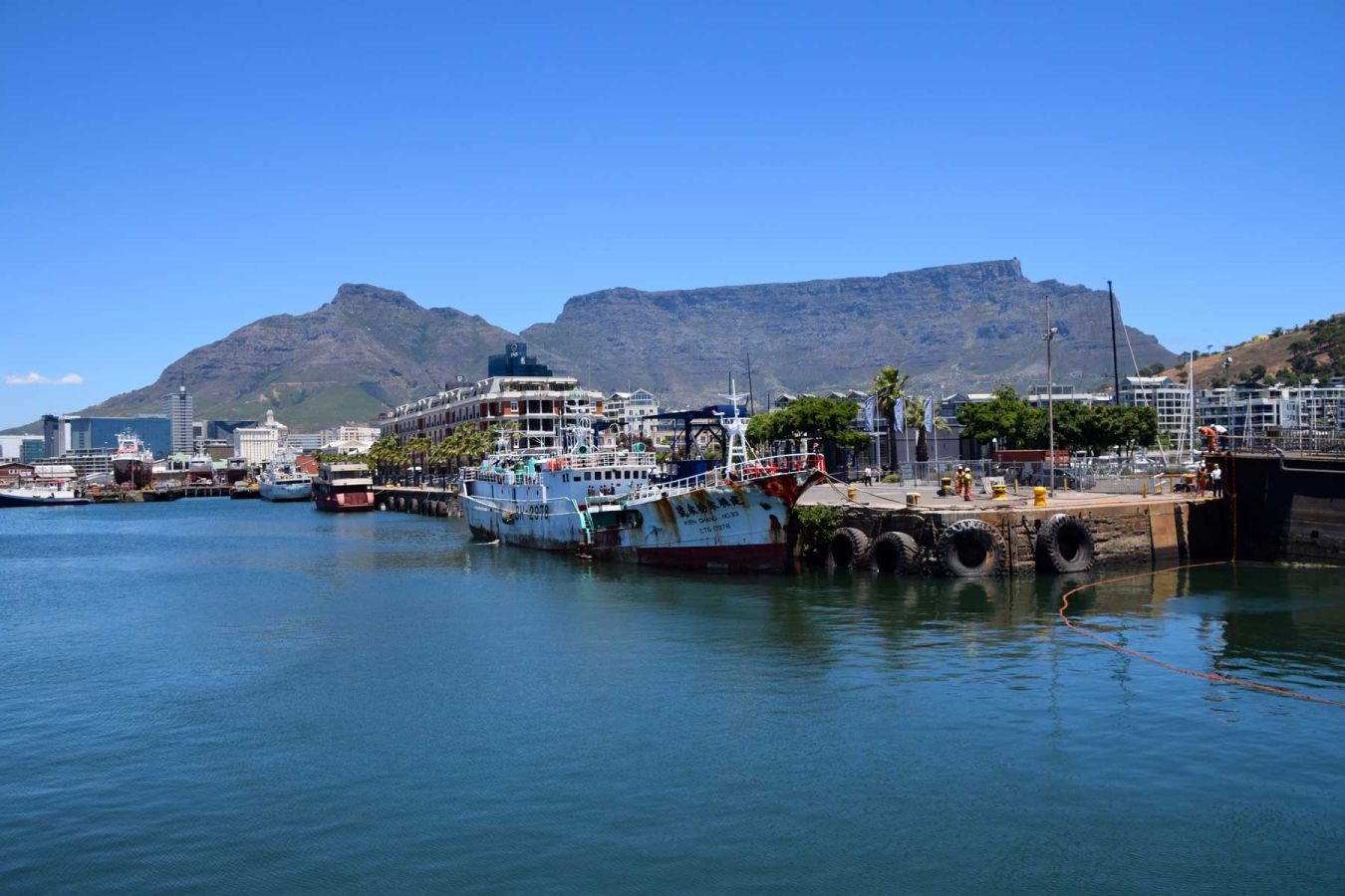 Nach den 9 Löchern fahren wir ins Parkhaus an der Victoria & Alfred Waterfront, denn dort können wir im Parkhaus den Wagen waschen lassen und vor allem von den Teerspritzern auf der Seite befreien lassen…