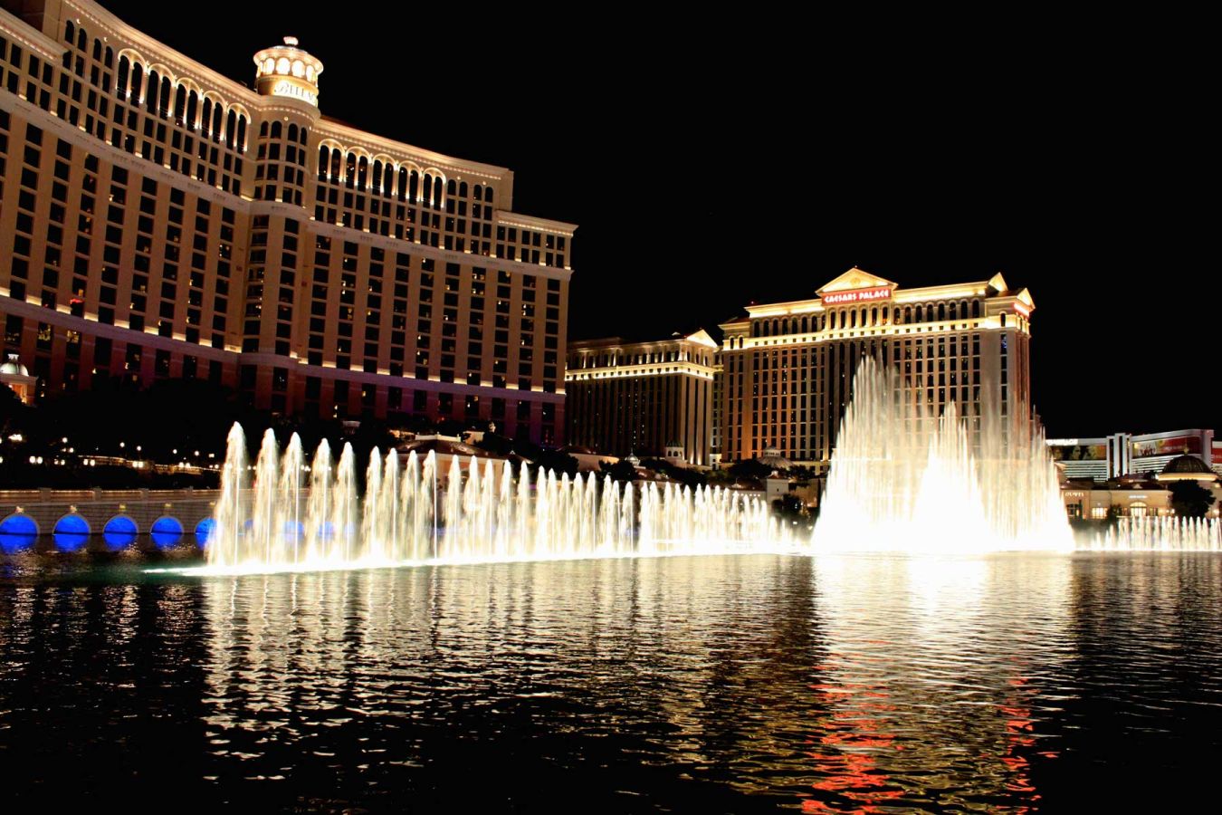 Anschließend sehen wir uns die beeindruckende Wassershow vor dem Bellagio an. Vorbei am Paris Las Vegas bummeln wir durch das Caesars Palace und die Forum-Shops; man glaubt man befindet sich im Freien, in einer Arena....