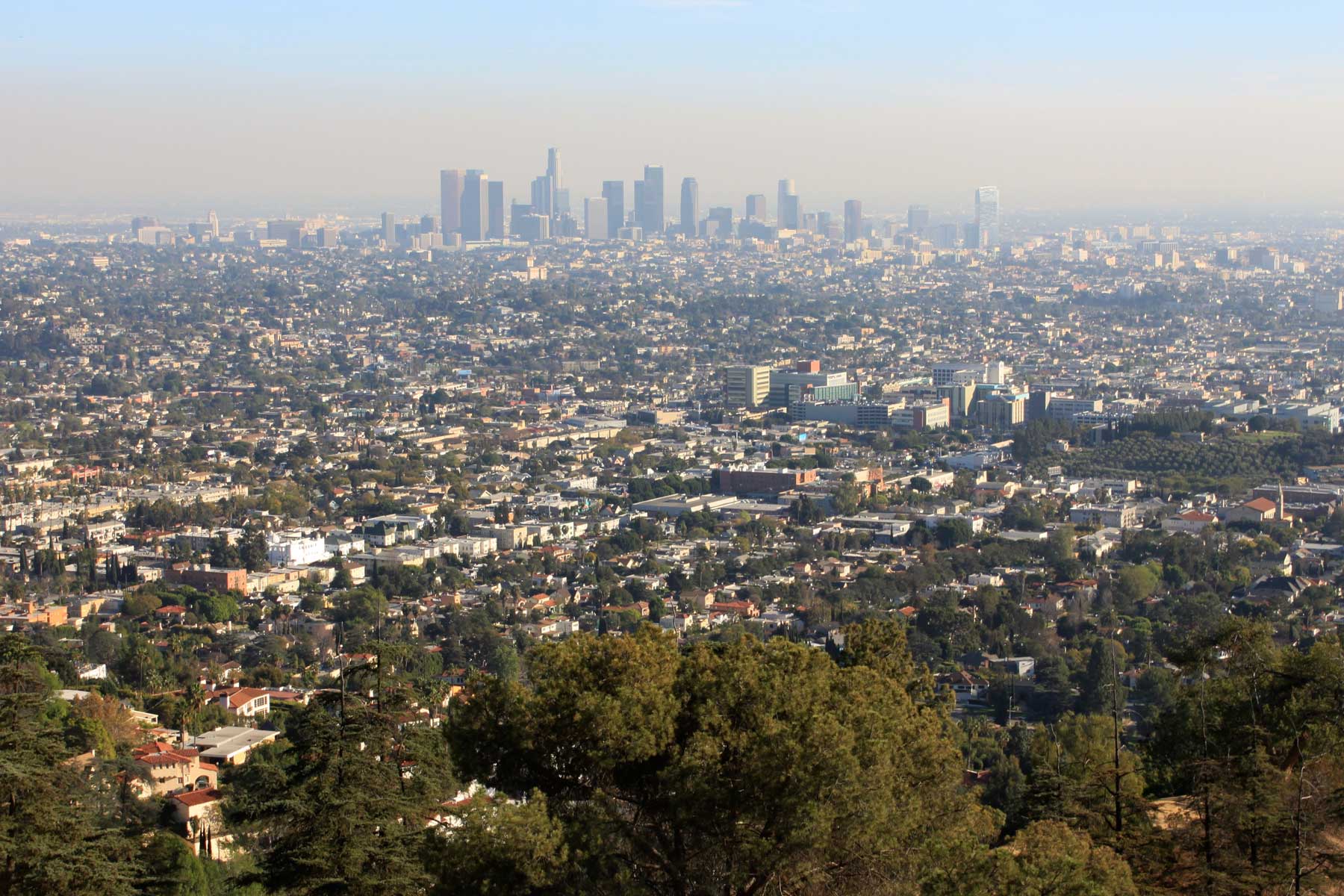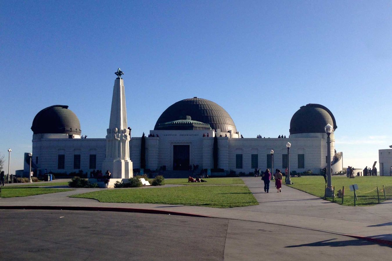 Danach fahren wir an den Paramount Studios vorbei und weiter zum Griffith Observatory. Von hier oben bieten sich herrliche Ausblicke über ganz Los Angeles, aber leider ist es ein wenig dunstig.